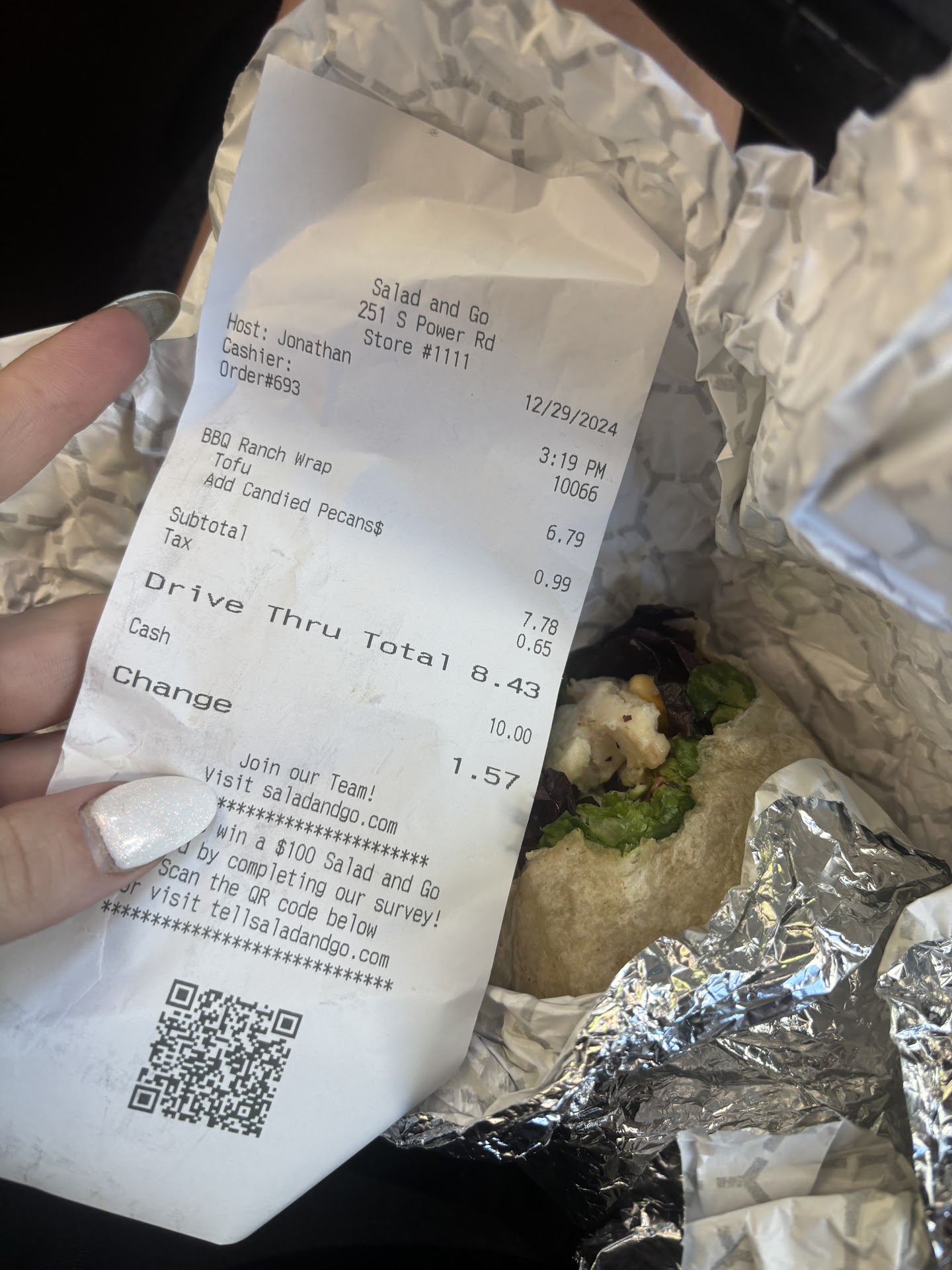 Edit: went back and they got it all sorted out. Salads big and made just right. 5...