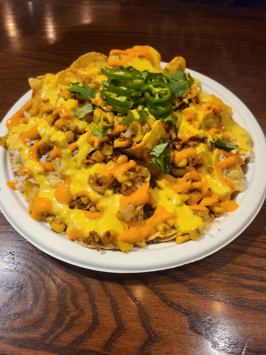 It didn't take long for those nachos to live up to their reputation. A symphony of flavors danced on my palate as the "cheese" sauce flawlessly embraced each tortilla chip, courtesy of a powerful buffalo sauce that truly stole the show. It's worth noting that the cauliflower wasnāt large florets, but rather seemed to just be riced cauliflower.