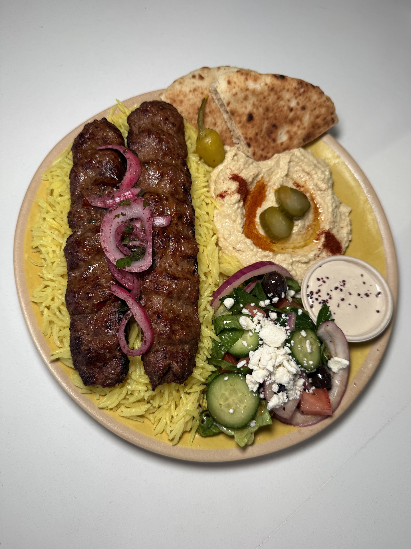 Kid 1 went with the shish tawook plate, which came with hummus, rice, and a choice of fries or salad. The chicken was grilled to juicy perfectionānot dry or rubbery at all.