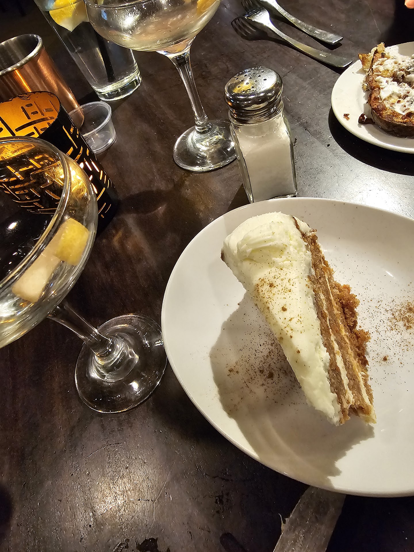The actual picture of the carrot cake looks much larger than it really was. The picture also makes our cosmo glasses look large.