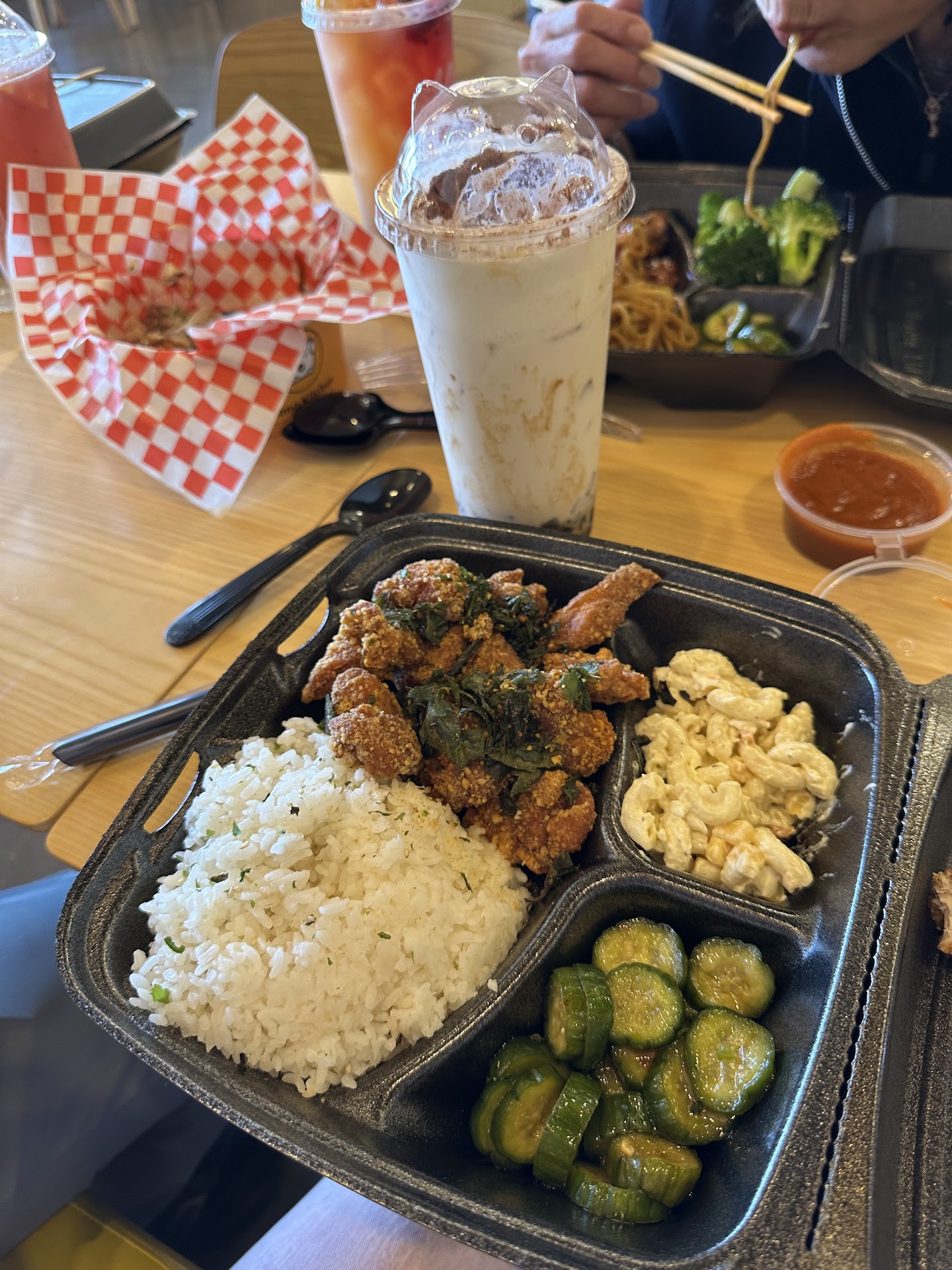 Read moreYUM!! The fried calamari stole the show with its tasty complex flavors with dipping sauce & light spiciness! The teriyaki chicken don was impressive! Chicken was tender and the light sauce not overwhelming nor tasting processed. It was attractively plated with a half egg and both broccoli and marinated cucumbers to round out the healthy meal. We ordered boba drinks that were just okay, probably because they were odd combination drinks - the sea salt mango milk tea and the matcha peach milk tea. Boba pearls were on the very soft side. Overall, fun food & I will definitely return and try more...