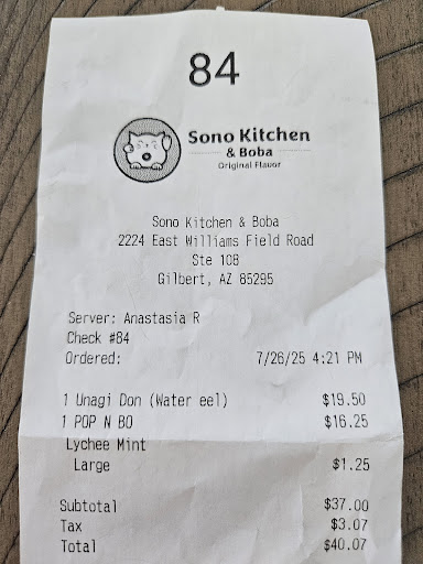MISFIRE ON THE HIRE (whomp whomp)...I was really looking forward to eating here, since I've only been to the Sedona location a couple times, but Anastasia R. was just seriously blah and dampened my expectations and hopes of a positive experience. Upon walking in, l smiled at all the cats decorating the eatery. It is slightly bigger than the one in Sedona so that was nice. However, after I scanned the menu, I was ready to order and Anastasia appeared to be disconnected, discontent, disengaged, sleepy and bored. She didn't even pipe up with a "Hi! Welcome to Sono! What can I get started for you today?" NOT even a smile. As someone who has worked in the world of customer service, this was unacceptable to me. So, that was disappointment number one with a side of bummer. I ordered a Pop and Bo and Unagi Don. My drink was the Lychee Mint. She punched in my food and everything came out to $40.07. She gave me my receipt with no words and then I sat down to wait for my food (no words from her, no thank you is disappointment number two). Despite Anastasia's lack of enthusiasm, the food was great. Decent portions, however, disappointment number three came with a bummer on the boba. Probably just got a heaping tablespoon and that was that. I usually go to Rare Tea and they are very generous on their boba portion- at least a quarter of a cup! The lychee mint drink itself was surprisingly interesting and well-balanced so I'll be ordering that again as my go-to, despite the lack of boba. The chicken was seasoned and fried well and the presentation of the unagi dish was great, so two thumbs up on the food. Don't know if the Asian guy in the pink shirt was the manager, but he seemed friendly and was working hard. I appreciated that very much and wondered why he was wiping tables (if he was the manager). Overall, kids these days should be better at serving people, especially if they so choose to work at a place where a greeting is pretty much, at the very least, expected. Food was great but managment could re-think their hires with kids who aren't really present and happy with their job. First impressions are always still appreciated and will bring customers back in. Thanks...