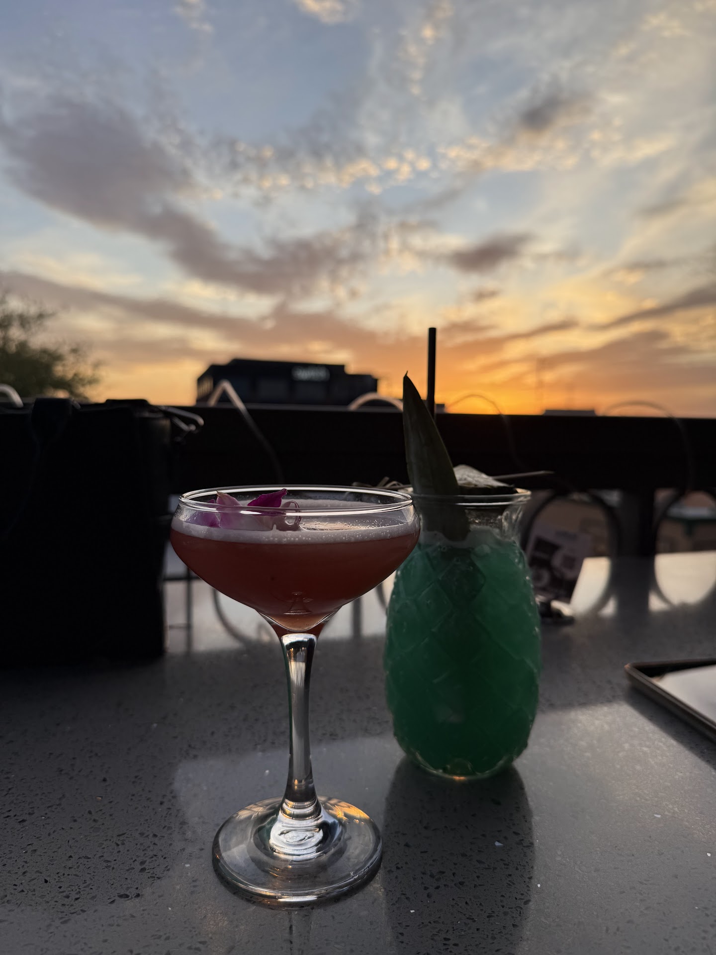 We were seated promptly at a booth with a perfect view of the sunset (a full hour ahead of the time I made a reservation for). Our host offered to raise the visor and gave us a stunning view of the evening sunset. Drinks were ordered and enjoyed. They have a really cool selection of unique drink choices you won't find elsewhere.