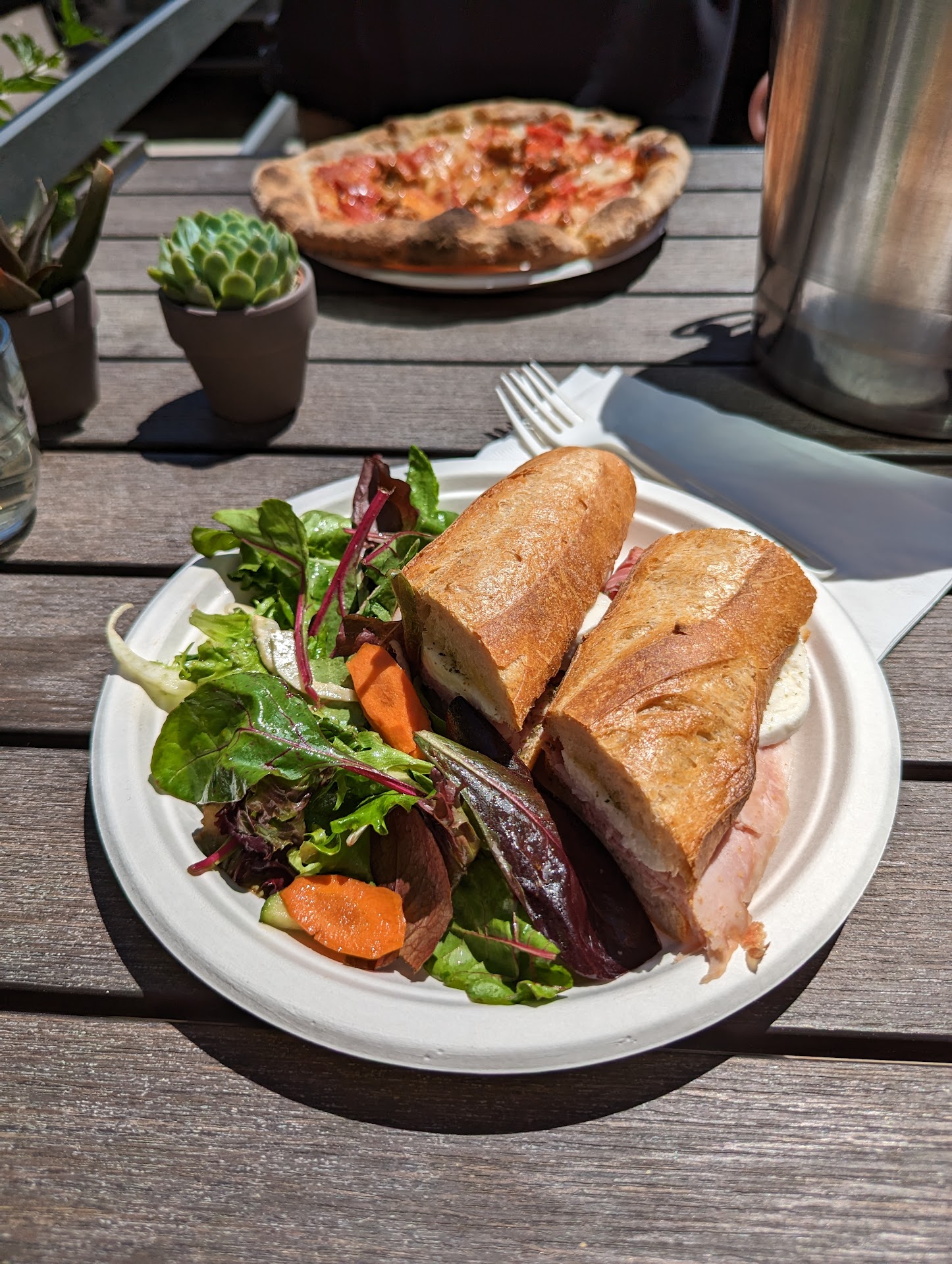 Read moreBland. Decided to try this place out based on the Phoenix New Times rating it as a top 100 restaurant in the Valley (whose reviews I typically respect). Ordered the Barrata appetizer, which was engulfed by a hoard of heirloom cherry tomatoes which all tasted like juicy cardboard. Had the Farro Bowl with the add-on of shrimp making it a $26 bowl (plus tax). Shrimp was over seasoned and the remaining bowl was totally bland and boring. My husband, and I also ordered the mushroom and ham pizza. It was soggy, and while I thought the chicken sausage was not bad, We both agreed that the tomato sauce was again…bland. It made me regret, ordering a chocolate chip cookie and loaf of sourdough bread to take home at before trying out the restaurant’s dishes. I brought the cookie home to my children. We cut the large cookie into quarters, each took a bite, and before I had said one disparaging remark about the restaurant, they all asked why it was so… Bland! Unfortunately, we had a piece of the sourdough bread with our Barrata, and it actually took away from the dish, making it even more bland than it already was. Can I return the loaf of sourdough already in my take-home bag??