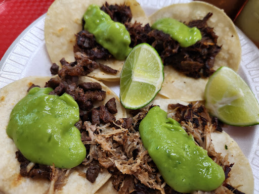 Read moreWasnât sure what I was walking into since it is literally a hole through a gas station wall. There are a couple of booths, but it feels like you are sitting in a convenience store aisle. They did the best they could with the space they had with Mexican music playing in the background. Onto the food. The menus is extensive and there is a tv playing videos of them making each dish (all of which look amazing). We got their 6-taco deal which is like $16 and includes a drink. Bring cash if you want to avoid CC fees. We tried their carne asada, carnitas, pollo, and al pastor. Very flavorful, fully packed, on fresh corn tortillas, with onion/cilantro mix and guac. I will definitely be returning. Salsa was not very spicy and staff was friendly. It is also a convenience store so if you prefer a different drink choice,...