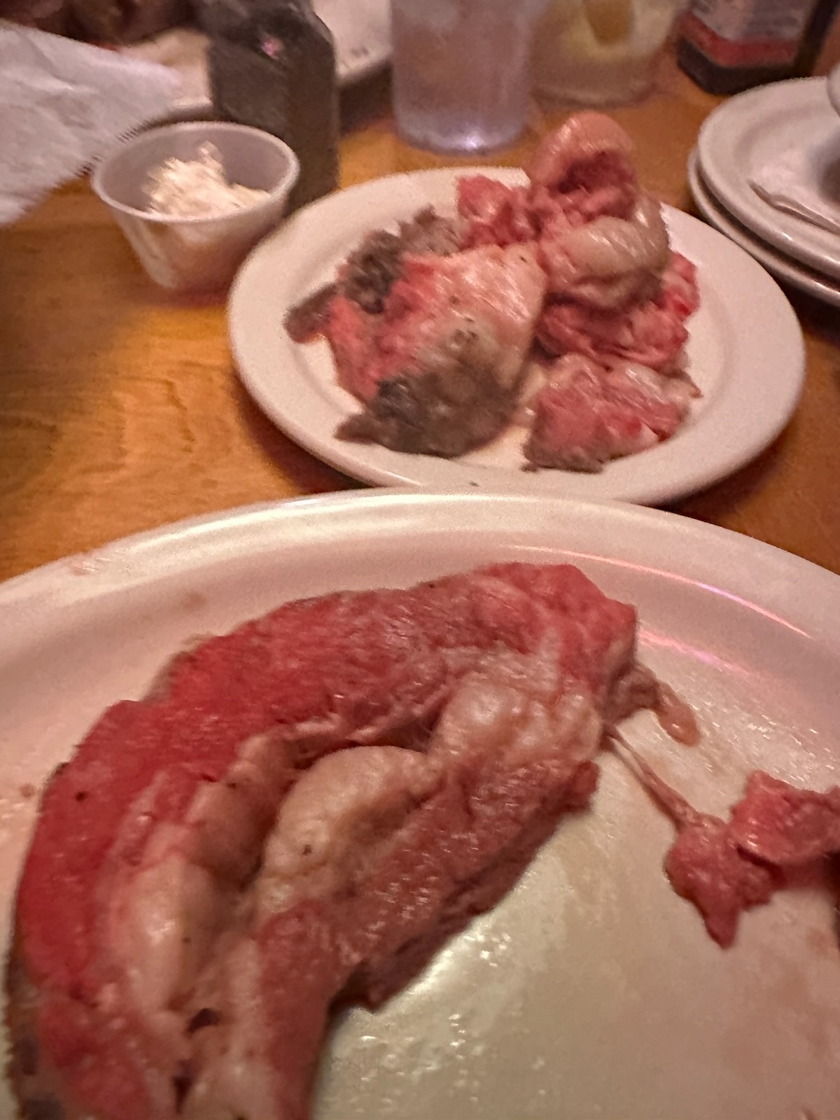 Read moreI'm starting to notice a trend on this issue and first noticed this at the Gilbert restaurant in Chandler. We ordered the same thing we always get and that was the Ribeye and ribs combo. 2x now the wife and I noticed this at this Power rd spot where they are trying to push a top sirloin off as a Ribeye steak. No marbling through out or lrg fat line deviding the two parts of the ribeye. We raised our own beef each year on the farm for 30 yrs+ and being a country boy definitely knows the difference of the 2 cuts of beef. These were sirloin and the ones that I would leave in the freezer for the girls in the family that did care for much fat and more taste. They are thin and not thick like the Ribeye steaks they use to serve. Even in their display case out front, they looked like cheap sirloin. If you can't taste the difference between the 2 cuts, then sirloin is for you. I've been to many Texas Roadhouse restaurants throughout Colorado, New Mexico, and all across Texas and Louisiana and have never had this issue. They are probably getting the white face Herford/ Angus mix breed. So much better than what's being served here. The service was great, but the steak wasn't a Ribeye, and the ribs were way overcooked. Too dry to be serving. Ribs should be very juicy with lots of flavor. You should have to cover it with BBQ sauce to choke them down. We shared the combo and still didn't make it through half of both. The dog ate well, I guess. Biggest waste of $50 dollars, and that was just drinking water to get full flavor of the meat. Didn't happen. The wife and I decided that to make sure this didn't happen again, that we need to keep grilling our own and smoking our own ribs to make sure they are done the real cowboy way. And I really don't think either of these 2 locations really care about what they are putting out in the way of quality. This place has sure changed from what they once were. It's very sad, especially with the name Texas on it. It gives Texas a bad name. The server was great, and it wasn't her fault. She brought it out medium rare to the best of her ability for a sirloin steak, which came out medium...