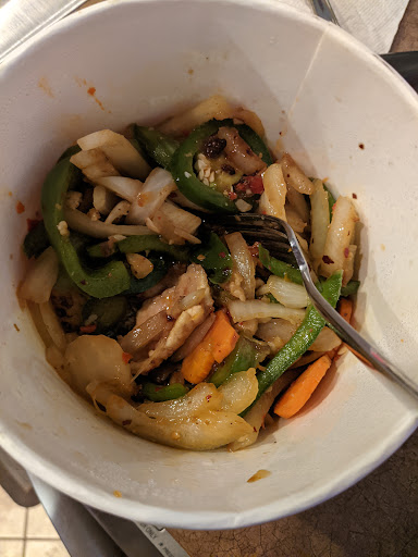 We ordered online for pick up and before we ordered it said pickup in 20 min (6:22pm). Then after we ordered it said 35 minutes (7:07pm) but I got there @ 7pm and waited longer as it was ready by 7:15 min (48 min)! Then they forget to give me my 2 orders of dumplings and I didn't notice until I got home! My husband wasn't happy and I'm super pregnant so nether was I. I had to drive all the way back to to get them. Didn't eat until and hour and ten minutes later. Everyone walking in was not happy as they too were experiencing long wait times on pickup. People were being turned away that came in to eat due to having to wait 30 plus minutes for fast food.