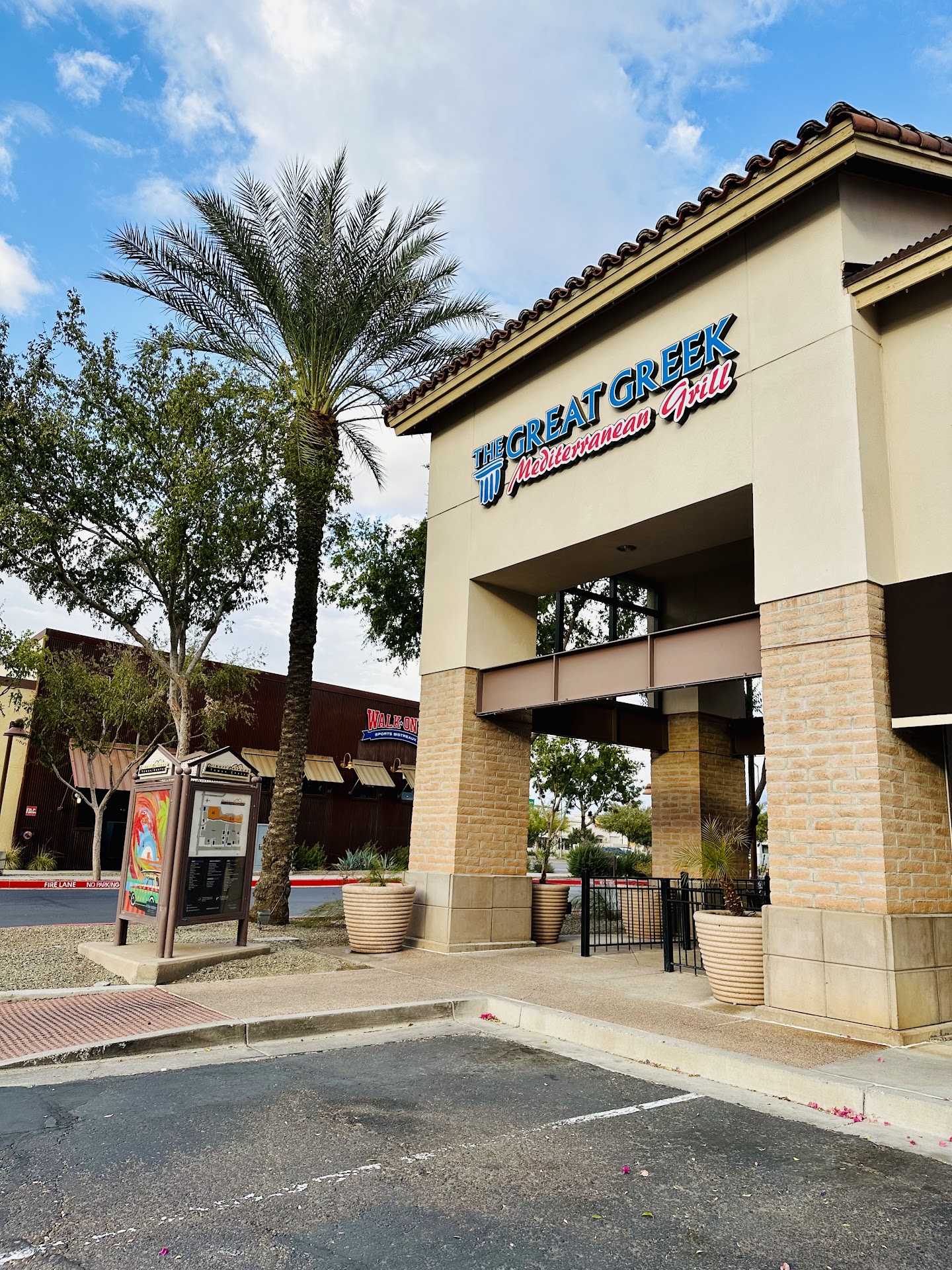 I wanted to like this so much!! Mediterranean food is my favorite and this place is just around the block from my house. We walked up last night 2/10 and the manager or owner (long sleeve, light blue button-down shirt) was out front and he said “hi welcome in,” very nice. We walked up to the counter, and we were half greeted by a woman who you could tell didn’t want to be there. (Red polo, short hair, stretched lobes.) We tell her it’s our first time here. We order a steak kebab, a chicken kebab both with rice and a large Greek salad and the pepper/feta app to share. At no time, did she bother to tell us that the plates come with a Greek salad before the meal. Yes, I could’ve read the menu, but someone who’s paying attention and in customer service could have made this experience so much better. I said it was our first time here which means we have not seen the menu and she knows how quickly we went ahead and ordered after walking up. Would’ve been great if she would’ve just thought to say did you know the plates come with a Greek salad beforehand? Needless to say, I have a full Greek salad to eat today because we didn’t even get to touching it. The portions are huge, which is great since the meals are $18-20. The pepper/feta app was incredible! The steak kebab while cooked perfectly, was way over seasoned with salt. The chicken was okay. During our meal, a sweet young woman (black tee, burgundy-ish hair) came and checked on us. I saw her engaging with other tables as well. She should work the register since first impressions matter! Overall, it was just an okay experience. Considering my two favorite Greek restos are in Mesa and the other side of Gilbert, I may come in...