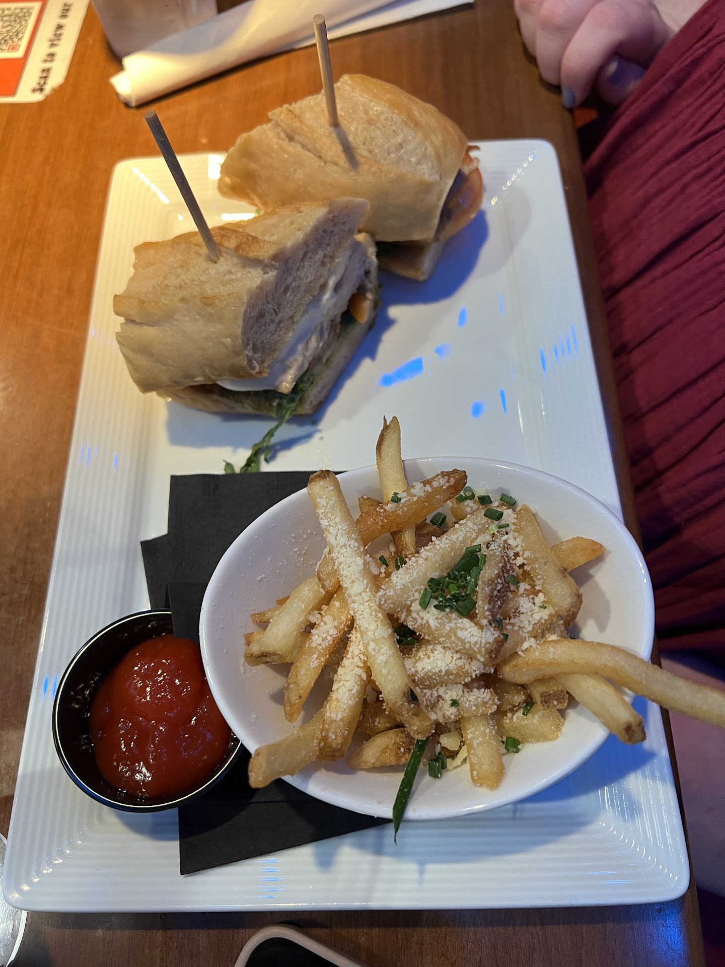 Read moreThe food and drinks are awesome, food came out very fast and large portions making the pricing worth it. My discrepancy is with our service. We arrived sometime around 4 and she got my husband a drink immediately, but getting an appetizer took quite a few minutes for her to place the order. Our servers name was Whitley on the check, she never introduced herself. Anywho, getting an entree order in took what felt like 30 to 40 minutes for her to come back to our table. And not only was I frustrated by the wait, I observed her. She had no more than 4, maybe 5 tables including ours. She would wait in the well for drinks and take them back to the other tables slowly. Not once did she come back to check on us, but went back to multiple computers and would hang back and chat with other servers. I wish we had gotten any other server, as I saw all of them check their tables multiple times in timely manner. Not ours, when Whitley finally got our food order it came out in less than 10 minutes which was nice as I was hungry and really looking forward to a burger all day. It was date night for us and her neglect left me sour. She was very nice, but did not manage her time or tables well. I’ve been a server for 4 years and I also work at a sports bar where you dress cute and cater to people but I never treat my tables like a back thought and I always check back frequently when I make rounds, even if I’m busy and bogged down with 6-11 tables. As much as I love to talk to my guests and coworkers, they shouldn’t be ignored as much as we were. Whitley could have gotten us out faster and gotten another table to make herself more money. I only left 10% when I usually leave 25% or more: The blonde who served the tables next to us was impressive, she was personable, caught every new member joining...