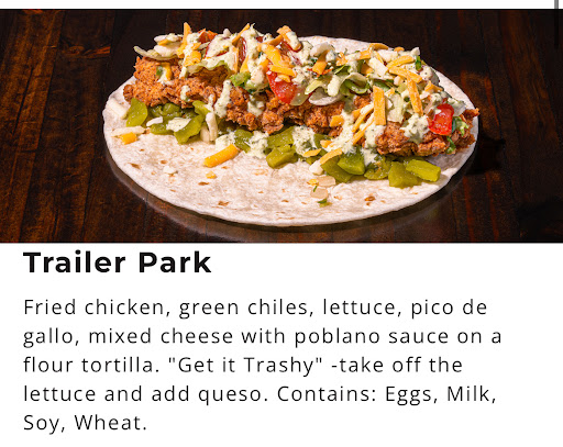 Was supposed to have green chilies and stuff but it basically looked like there was a few green chilies skins and that was it. The republican tacos also had barely any toppings or meat on them and were mostly tortilla. Absolutely trash food don't bother wasting your money and support a...