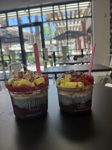 This was my first experience here. Staff was friendly and patient as well as helpful to me as I made my choices. The atmosphere was welcoming and well lit, a real chill mood if you choose to enjoy your bowl there. The fruits look and taste fresh because they are! Very yummy. I packed my bowl with acai, pitaya, and Tru mango along with vanilla granola, fresh strawberries, mango, and banana and topped it off with coconut flakes and honey. Since I was the driver and we didn't stay to enjoy it there my bases were a bit melted but I still enjoyed the blend haha The price is reasonable, especially when you can choose as many toppings as you want. They also have set bowls if you don't want to choose your own. They have one restroom for patrons which was clean...