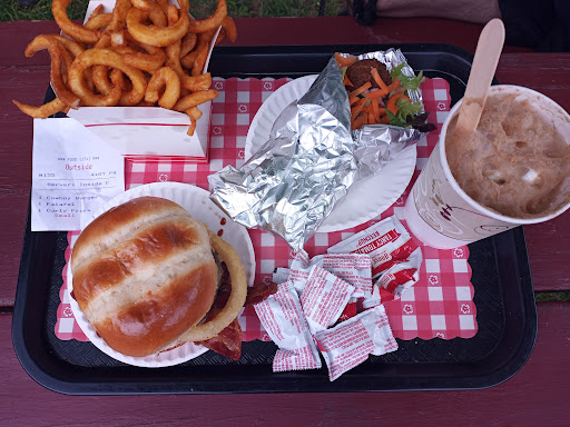 The burger for example… looks in actuality like the pictures of burgers you see in ads on tv promise. If a hamburger could be cute, this is it. The result of high quality ingredients, well prepared, and carefully put together. Already it's well beyond what I would have expected. But then you can pay a little more and get a burger made with local beef. And if that's not your thing you can get a turkey burger or 2 different veggie options. Again, more than I would expect.