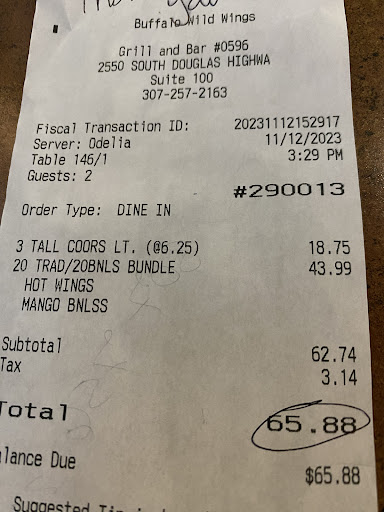 Read moreMy sister and I were there for lunch today. When we sat down, there were 3 tables total with customers. A total of less then 12 people. We were informed that due to new rules they now put in one order at a time. So we ordered chips and queso and we each order 6 wings with blue cheese and ranch. Our drinks were brought out and then our chips. 10 minutes later my sisters lunch was brought out. 15 minutes later my order was brought out! I dont know about you but when I go to lunch with someone, I do not eat until everyone has their food. So now my sisters lunch is cold. When we asked about this, we were told this is how corporate wants things done to make sure everything is fresh! This is the most ridiculous thing I have ever heard. Then when we tried asking questions the manager on duty refused to listen by stopping our questions by interrupting. When I go somewhere for a meal, especially when I am from out of town, I try to go where there is something not available in our hometown. I guess from here on out we will choose Buffalo Wild Wings Franchise vs Corp. As we were also told the franchise doesn't have to follow this rule. One last not...when we tried calling the corp number we followed the process and the machine told us they were not...