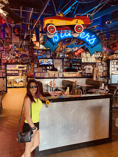 This place only deserves a one star review because of the fun decor and atmosphere. Otherwise food and service would not even get one star if I could give zero! We waited over an hour and a half for our food. We sat at the bar and our original server was the bartender. He was pleasant enough, told us after a very long wait that our food was up next. We waited over a half hour more for food that was first off, not as described in the menu, but also either not done enough or over done and luke warm at best. We never did see our original server after he told us our food was up next. A new server brought me a burger missing one ingredient and served on a bun that was crusty and dried out! My onion rings, which the menu described as âfamousâ were still crunchy semi-raw onions. They said they would take the upgrade price off for those and make me new ones, which we never did see! My husband ordered sweet potato fries without the powder sugar they usually put on, but it was on there anyway. His burger was dried out and over done and possibly sitting under the warmer for a while. At least his bun was soft and not crusty. We paid almost $45 for this terrible meal and experience! I canât believe they only took off the $2.50 upgrade fee for the onion rings! We also saw another gentleman in the bar that left because no one came to take his order. 100% would...
