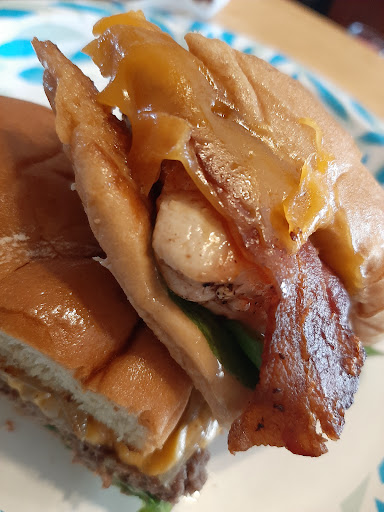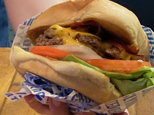 Walking in, it smelt amazing. It’s almost like a big kitchen with a little counter to take your order, but has ample seating outside. The portion sizes were huge! It was a little pricy, but not too crazy. They are smash burgers so they have a bit of a crunch, and they are double smash burgers so once you start getting the toppings in there, that burger grows high. That was a struggle for me because I have a small mouth and tend to tear the corners of my mouth, but I think most people would appreciate it. Great flavor for sure.