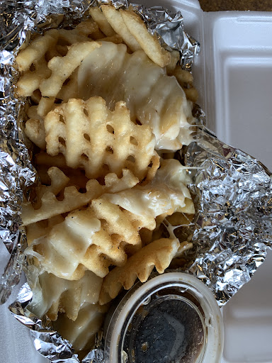 Now unfortunately when we got our order, my burger was not what i had ordered (this one had Jalapeño and no bbq sauce) but by this time they were so busy and struggling to keep up with the orders they had, that i simply scraped off the peppers instead of trying to get it fixed. The half I ate was really dry, but the flavor was very nice.. seasoning was spot on and the cheese melted perfectly. My cheese curds were also fantastic. My husband got the loaded fries with cheese, which the fries themselves were also great! Fresh, crispy and perfectly salted, but the cheese was just shredded and tossed on top, it didn't melt or anything, and halfway through the fries he found mold on the cheese. :( So we said let's toss it and get outta here.
