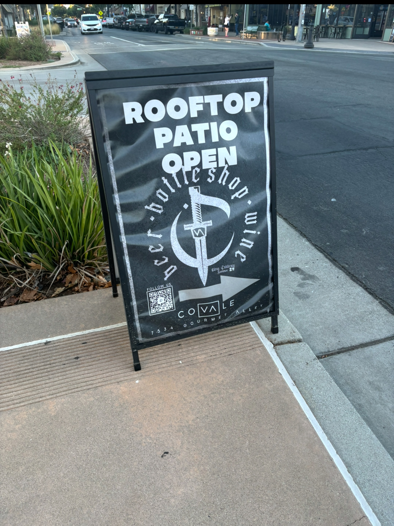 Read moreCOVALE Rooftop Beer & Wine Bar has an amazing selection of local and even out of state beers, ciders and sours you have to try as well as wine and homemade Red Sangria. The indoor space is very comfortable and spacious with high and low top tables as well as a leather sectional with large screen TV w/ card games! Outdoor rooftop seating is very spacious with shade and a cool breeze in the evenings. Definitely a nice addition to the Downtown Gilroy scene. The owners and bartenders are all amazing! The VIBE is 💯....