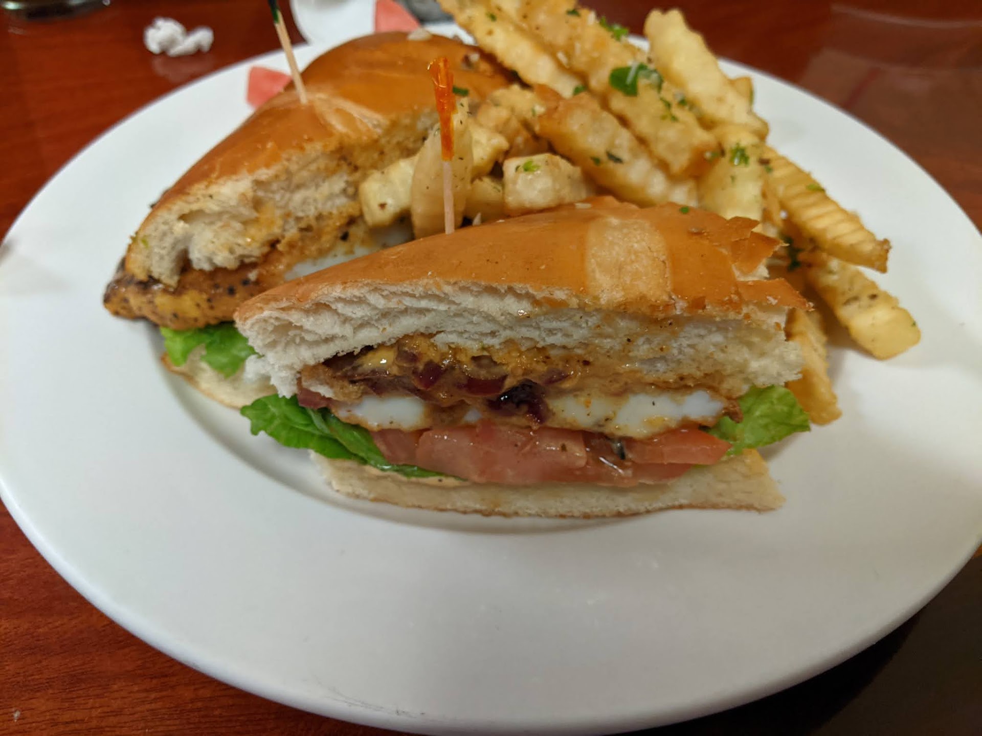 When my sandwich arrived, it didn’t have any onions. The chicken was super chewy and semi cold. It was supposed to have chipotle but all I could taste was bbq- I am not a huge fan of bbq sauce.