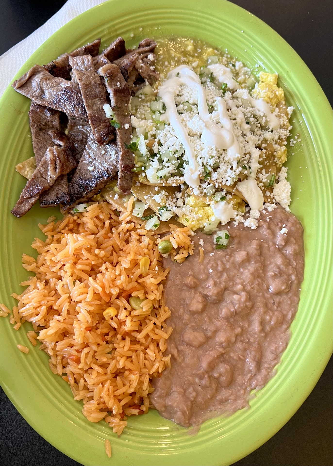 I also got to try their Chilaquiles Verdes plate with Carne Asada. The beans and the chilaquiles were decent. The egg was fluffy and the sauce complimented everything so well. The cheese and cream topped it off. The carne asada was well seasoned and had good texture. The rice had great flavor and was fluffy.