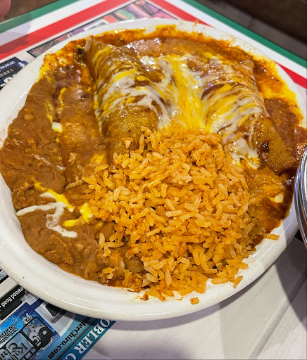 If you love beans, cheese, and rice, get an entree here! The salsa isn't salsa. It's tomato puree. But ask for the spicy salsa. It's delicious. Enchiladas are stuffed and smothered with delicious, gooey, cheese. Hard to distinguish food items as everything is the same color. The pork was very good in the taco and enchilada. Service was great and food came quickly. You can peruse advertising for local businesses right on your dining table! Portions are more than generous and you won't leave hungry. This isn't the spot for authentic Mexican food, but there's a bar with sports on and there are margarita specials.