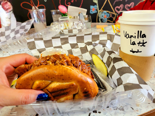 Ā Ā Ā Read moreAbove and beyond! Its decor is so unique and original. The walls are a huge blackboard, and everyone is welcome to draw or write in it, perfect for small children and adult artists. My favorite thing was the christmas tree all year long. I visited during Easter, so it had Easter eggs. There is plenty of free parking lot and drive-thru. I got a tasty pulled pork sandwich and a creamy vanilla latte. Their salad is superb.