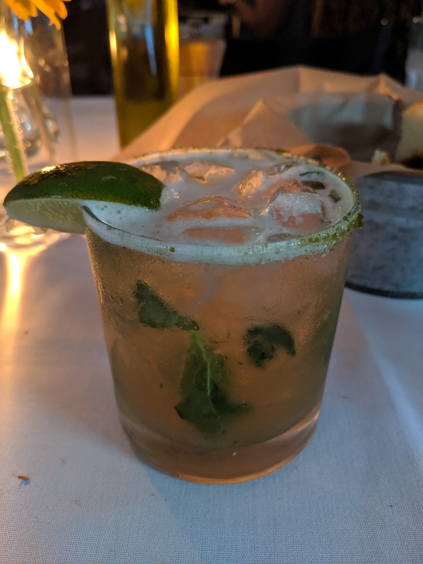 Everything was delicious, fresh, just perfect! Monica was our very knowledgeable, friendly & attentive server (not intrusive). Started off with drinks... Georgia mule coctail (refreshing...love the copper mug it's served in) and a Cisco beer on draft (finally a draft at the right temperature!!!) For our appetizer we had the Wild gulf shrimp, croustini, red pepper & chipotle sauté. The chipotle was so good we requested some bread to soak up the rest of the sauce! We both had salads before our main course. The House Salad w/Balsamic reduction was very fresh. The cherry tomatoes sliced in half tasted as if they just picked them ripe off the vine before serving them on a bed of mixed greens and julienned veggies. So yummy! The Ceasar Salad was equally delicious w/ romaine hearts, croutons, anchovy, and a parmesan crisp. For our main course we chose the Seared Stonington Sea scallops with basil lemon cous cous, sweet pea puree, and julienned vegetables, and the Pan Seared Sea Bass on a bed of cream of local corn, chive & bacon risotto, roasted beet & carrot reduction & grilled asparagus. Both of our dinners were cooked to perfection! Not one place we've been to in the past 2 yrs knows how to "pan sear," like the chef at 2Hopwell Bistro did today. Scallops and the Sea Bass both seared to Perfection!! Both dishes were full of flavor, and plated & presented beautifully! We will definitely be returning to try out their other menu items, especially if today's meal is any indication of what we can expect for all their dishes. A perfect ending to our perfect meal was a great cup of coffee and a Deconstructed Peach Cobbler. I died and went to heaven! Very tasty (just wish there was some "peach sauce, " that the peaches were soak in, puddling under the yummy cake (hint...hint...). But seriously, What a gem to come across while out riding the motorcycle today. We've passed by many times, but never stop until today. So happy we did & even happier to not be disappointed (hard to find a place today that is 100% on the money from the drinks, the service, to the food)! We sat in the tavern downstairs. This area is definitely cozy & casual. It does get noisy when it fills up, but not enough to scare us away. Someone noticeably pays a lot of attention to the smallest details of the ambiance and decor right down to the mini oil lamps, the various potted plants throughout (upstairs & downstairs), and fresh flowers on every table. I love the big sunflowers! (See my photos) Can't wait to return. We'll...