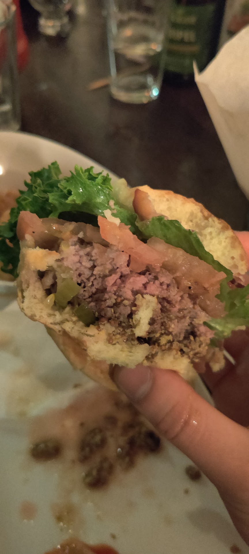 This last time I got take out. The salad dressing was like thick salty mayo and I ended up throwing it out after two bites. The chipotle spread on my Baja burger was not put on as a spread and congealed in a big pile under the cheese so when I pressed the bun together the whole thing popped like a zit. I scraped off most of that mess and the burger still tasted of just spicy chipotle and salt. I usually like spicy foods but this was gross. I ordered tenders for my son and specified to have the sauce on the side and ranch. The tenders came tossed in sauce and with blue cheese. Not to mention they were barely tenders. It was like very skinny thin cut pieces of chicken saturated in breading. There’s more breading than chicken.