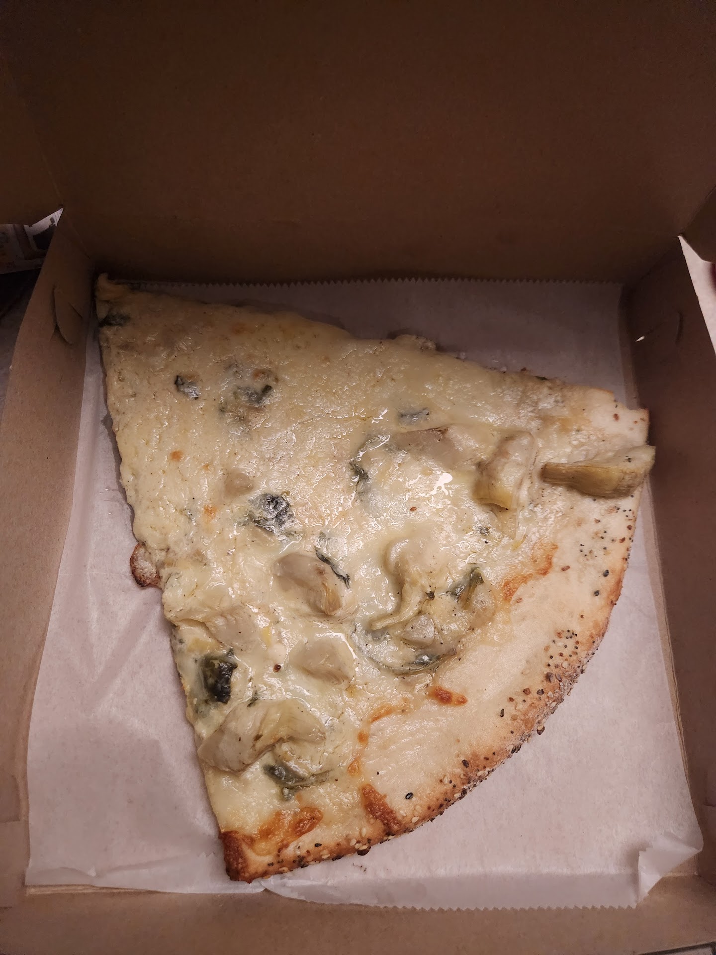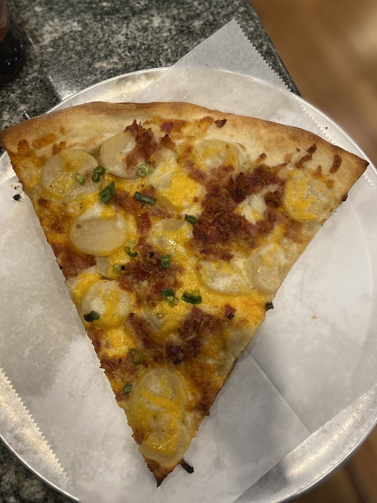 Read moreFirst time experiencing SliceWorks. They Just opened in Glastonbury. I tried a slice of each type of the common pizzas...Neapolitan, Sicilian, and the Grandma. We also got a Buffalo Chicken pie. Each slice was average. The Sicilian was the best of the three. The Buffalo pie was bland for our tastes. Perhaps a stronger wing sauce and some extra Bleu cheese would make it better. The amount of chicken on the pizza was great though. Each crust was average along with the sauces on each. The sliced garlic on the Grandma was a good addition. We will probably try getting an entire Neapolitan and Sicilian pie in the future to see if having them cooked fresh to order makes a difference. We typically try a place 3 times before passing final judgment, so we'll definitely be back. We have plenty of pizza places to choose from in town...all are average imo. We have our favorite just like everyone else. We were hoping for a winner with SliceWorks, but that didn't...