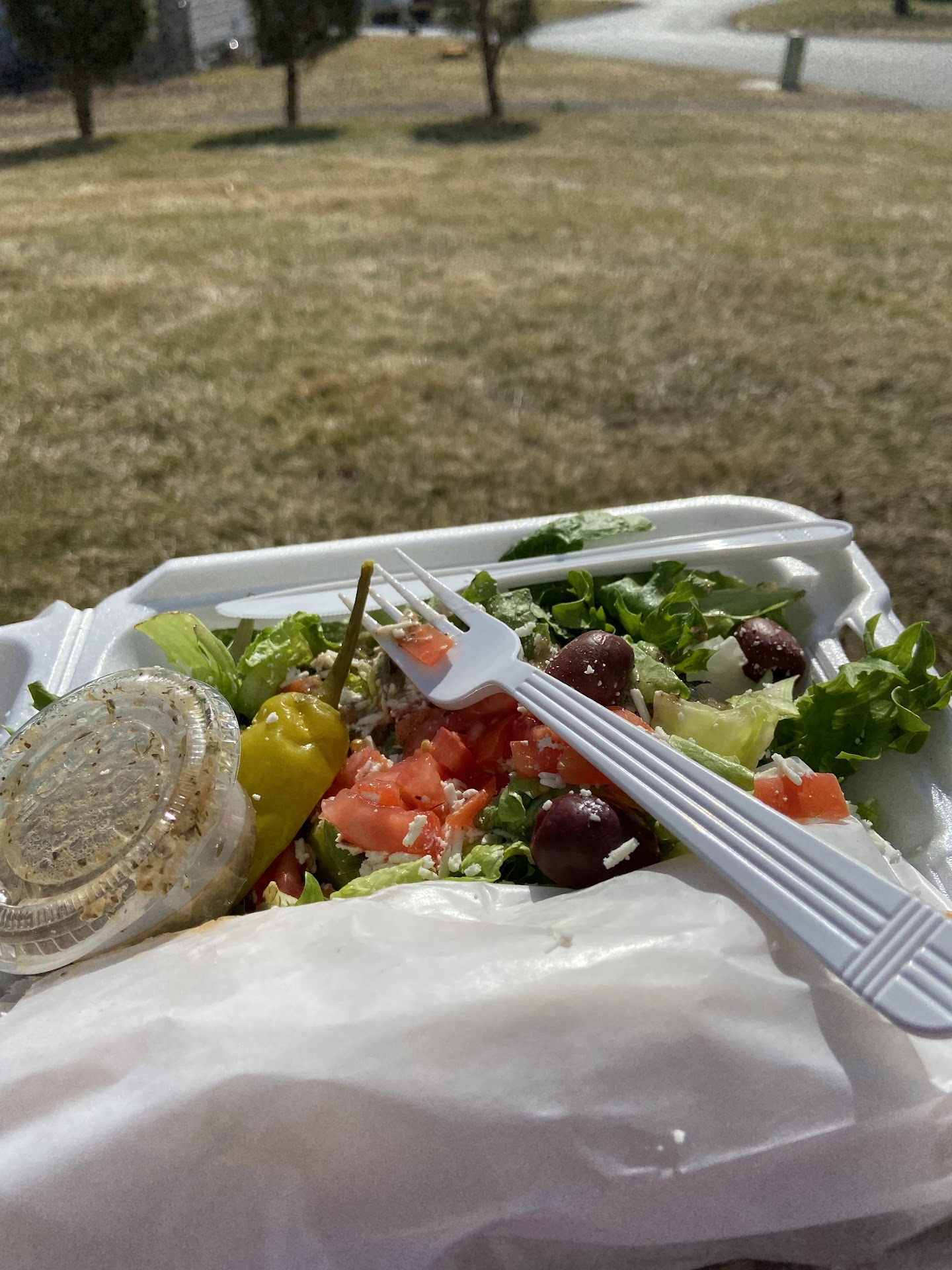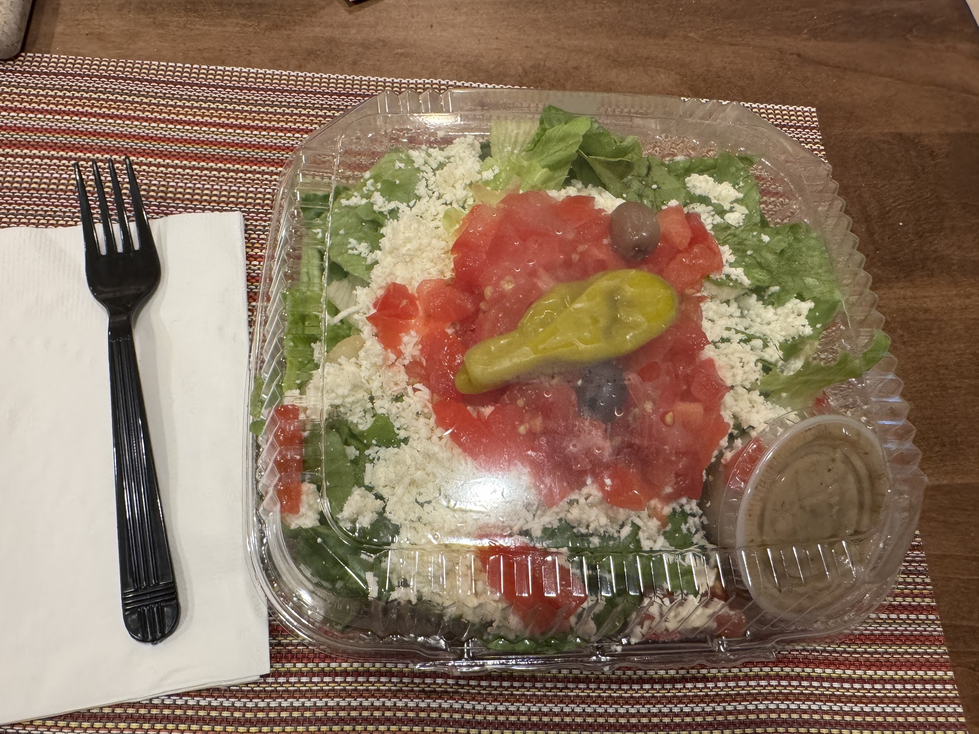 I was craving an authentic Greek salad. When I visited Greece a few years ago, I had a Greek salad every day. A traditional Greek salad consists of sliced cucumbers, tomatoes, green bell pepper, red onion, olives, and feta cheese. what I got was perhaps a more Mediterranean version. there were no cucumbers, and the tomatoes were diced, not sliced. They feta cheese was grated, not the slab that I prefer. But I understand that ethnic food is often change to adapt to American taste. The salad was a little soggy, and I really missed the cucumber slices, but the desserts and the display case look terrific. I will skip the salad next time and try some of the other entrées. Service was very pleasant and prompt. it is definitely a takeout place, but there was a couple having their salads sitting on one of the sofas. It is definitely a takeout place, but there was a couple having their salads sitting on one of the sofas. I hate parking in that spot so what I normally do when I leave is I drive down the alleyway beside it then come out on the street and then turn to go back onto...