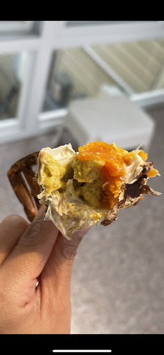 Takeout ONLY. order early because they sell out every day, esp in the summer. you can look online for prices or see my photos here. Shrimp, crab cakes, butter, crab seasoning for sale. All looks very fresh and I’m very picky with my seafood. My crabs were not ready at pickup time but they were worth the wait. $35 females, half full of roe. The meat was perfect. If you need to reheat—375 at 10 mins in the oven. Suggestion: sell claw crackers