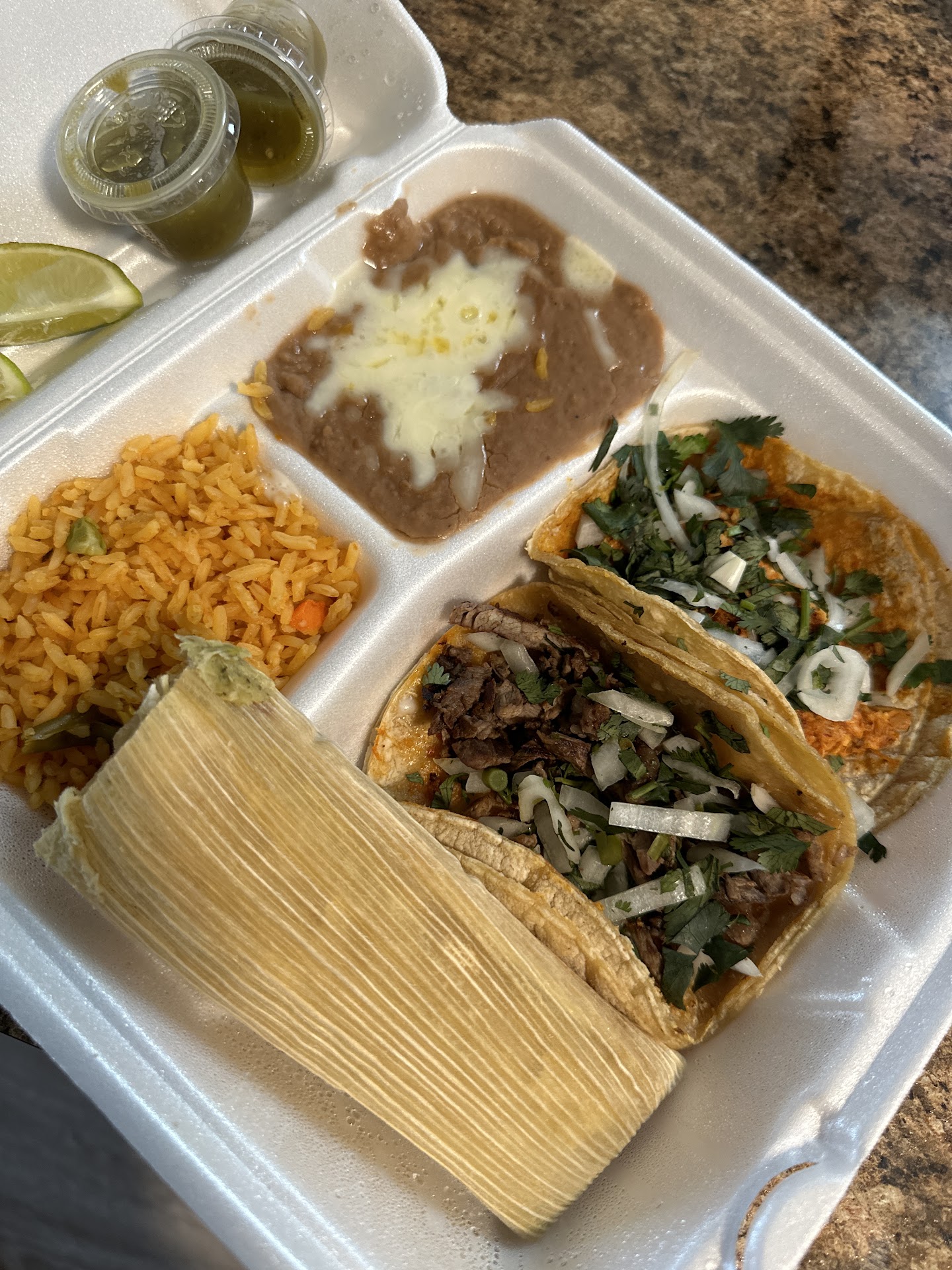 Read moreWalked in, there was no one in the place, no one waiting behind me, one guy walking out at 615p on a Sunday. I told the woman taking my order I knew what my husband wanted but I wanted to try something different. I ordered my husbands food and was looking at the menu. Apparently I took too long because the woman slammed her hand down in the counter and glared at me. There was no one waiting behind me, it wasnt closing time, and it had only been 20 seconds?? I asked a question..no response. I heard her speak perfect English to the cook so it wasnt a language barrier . My husband was starving so I ordered my usual, grabbed the order and left. I threw mine away when I got home and ate leftovers. My husband said it was average. No idea what that was about and i dont care. Just letting everyone else know i had a bad experience and wont go back. There are 1000 taco places around here. I now see why this one is...