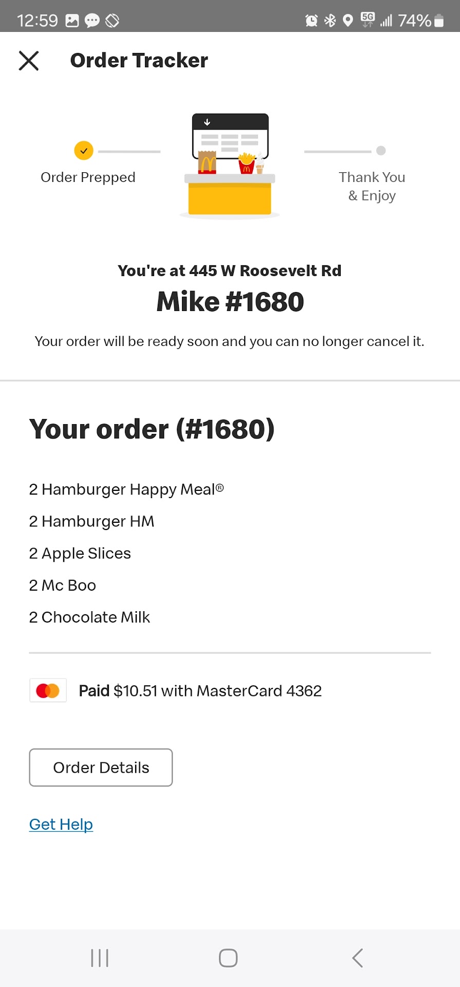 Read moreWent to this McDonalds location on 07/03/25 (at 6:15pm) . I had placed an order using the Mobile app to pick up through the drive thru. After receiving the notification that my order was ready I made my way to this location. I went through the drive thru and everything seemed fine. Worker asked for my code and I gave it to them, they told me to pull up to the second window. Once I got to the second window the worker told me it would be just a few minutes. It was about 5 minutes later when they came back and told me to pull forward to the door entrance. I had originally placed this order so I could get my food in a timely manner since I was in a bit of a rush. After about 25 minutes, a worker finally came out and asked me what my order was. They did not even have my order ready even though the app told me it was. I don’t normally complain about things but this is unacceptable. Having to wait 30 minutes for a few items shouldnt have taken that much time. Especially since the location didn’t seem super busy. It is unacceptable to have a customer wait 30 minutes for a few small items despite saying that the...