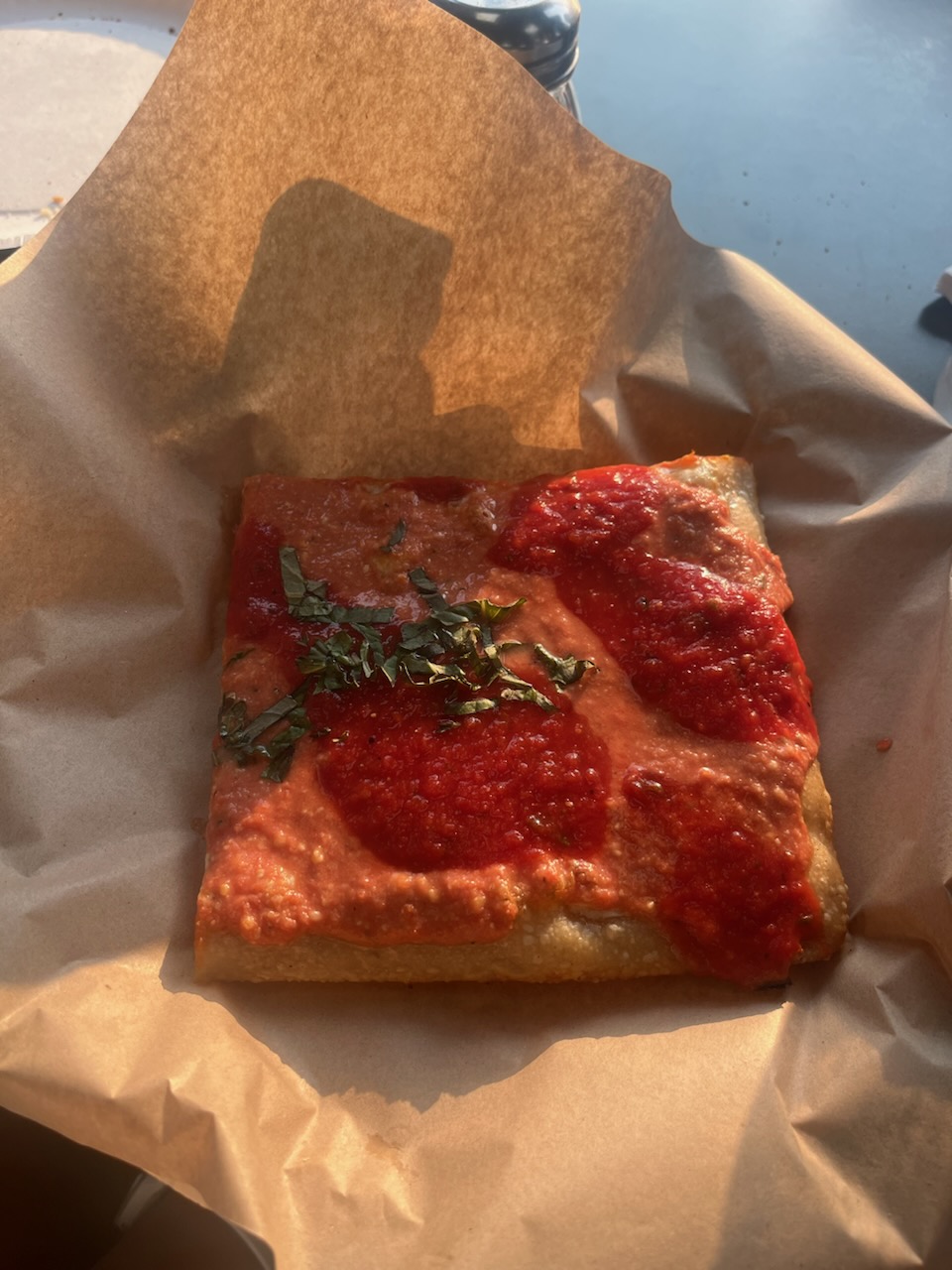 We decided to get several slices to try. We got buffalo chicken, BBQ chicken, Sicilian style, and garlic white. The pizzas came out hot and fresh. When you first bite into any of them, you’ll get this delicious, crispy crunch along with the sauce. That’ll be the first thing you notice. What follows are more tasty, flavorful bites until you finish the slice. You’re never chewing on the pizza that long either, it’s just a little chew. The garlic white has a nice cheese pull when you take a bite and you can smell/taste the garlic. Definitely not subtle. The chicken on both of the BBQ and buffalo chicken pizzas are perfectly cooked. The Sicilian style is a giant square shape but it packs a punch. By that, I mean you have a lot of flavors coming together and dancing the night away on your tastebuds. Highly recommend dining in and eating the pizza...