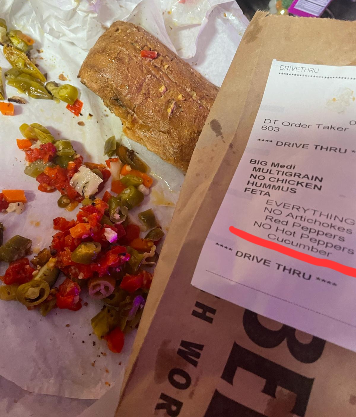 When I got the food home we unpacked it two of the sandwiches and the soup were as expected and enjoyable. To my surprise the BIG italian had only meat and cheese and no veggies and no condiments. This was very disappointing after putting on and expecting to have additions and selecting extra of some things and making it just what I wanted. It felt like I got half the sandwich I was expecting. It seems that on the app when you modify the sandwich size after filling out all the customizations, it doesn't just modify the size, but resets all the toppings. Ugh! This was not anyone's fault in the store as the ticket matched what I got, but it was a very frustrating experience.