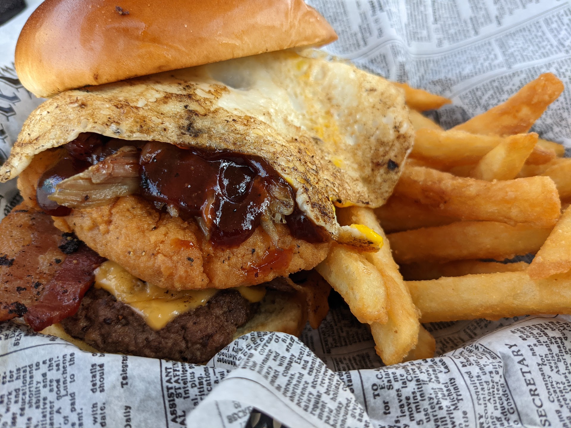 Food is okay, but the outside of the business is messy looking. There are old vehicles that donāt move, and it looks like itās a car shop. The outside seating āpergolasā they built are falling apart annd unsafe. If you do a to-go order of 1 item, it was over an hour wait, even on a Thursday evening. We have called in and did a reservation as well and they make you walk to the bar to order your own drinks and food still (like a fast food restaurant but with a 30-40 food wait time). They charge you $8 for a small slice of cheesecake that tasted like sour milk, and their food is not as pictured...