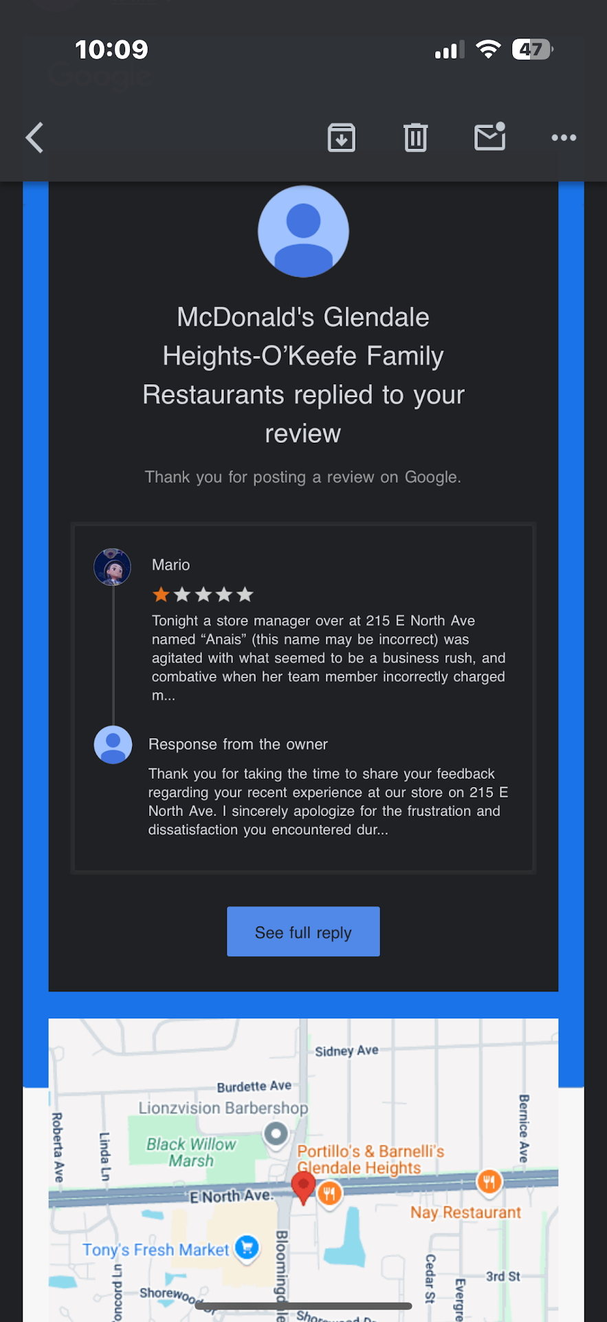 Tonight a store manager over at 215 E North Ave named “Anais” (this name may be incorrect) was agitated with what seemed to be a business rush, and combative when her team member incorrectly charged me for an item. When bringing up to her attention, she became disgruntled and asked me why i didnt tell the person at the first window. I had simply made her aware the order was incorrect, but what followed was a level of condescension that seemed to stem from what i believed to be the sudden business rush. Not sure if she was ill prepared for this sudden business, but this is no way to handle ANY issue that YOUR companymen caused. Best believe that I will be making a legitimate attempt to make it so this manager is replaced because for her to act this way seems to be something shes VERY comfortable doing. If this is how the O’Keefe name wants to be spread through the franchise then by all means this specific store will not last long. There were countless other violations aside from the seemingly out of nowhere disrespect; the food i had ordered, not sure if due to the error made by her associate or the fact that this establishment is running on poor equipment, was UNDERCOOKED and very visible signs of what seemed to be unknown debris that Im not familar with. If i could upload a photo here I would, but I will be reaching out to my lawyers due to the fact that this seemed to be a malicious attempt by the manager and staff to again; act as thought no consequences would arrise from their actions. I say this because once her attitude was brought up (which was almost immediately) I asked her to please refund me, I didnt trust theire system or their integrity or intentions to do the job correctly but also act in a manner that was civilized. She proudly made me aware that “there were no refunds” asserting a smirk with her delivery of the policy. So obviously, with my money REGRETFULLY spent I had to get the food. The food that, again, is undercooked and seems to have been tampered with. i’ve documented the food I was given and will have matters escalated through the proper channels because this is not only ridiculous but it is a violation of numerous food safety protocols that the employee has to maintain, so i- and the rest of the public, can rely on them with a reasonable expectation so this WOULD NOT HAPPEN. I would love to get a response back from someone in regards to resolution. Again, this is no way to exercise your power as Management for the company and I believe that the franchise owners would have some concerns with a member of their workforce (a manager none the less) acting in such unbecoming...