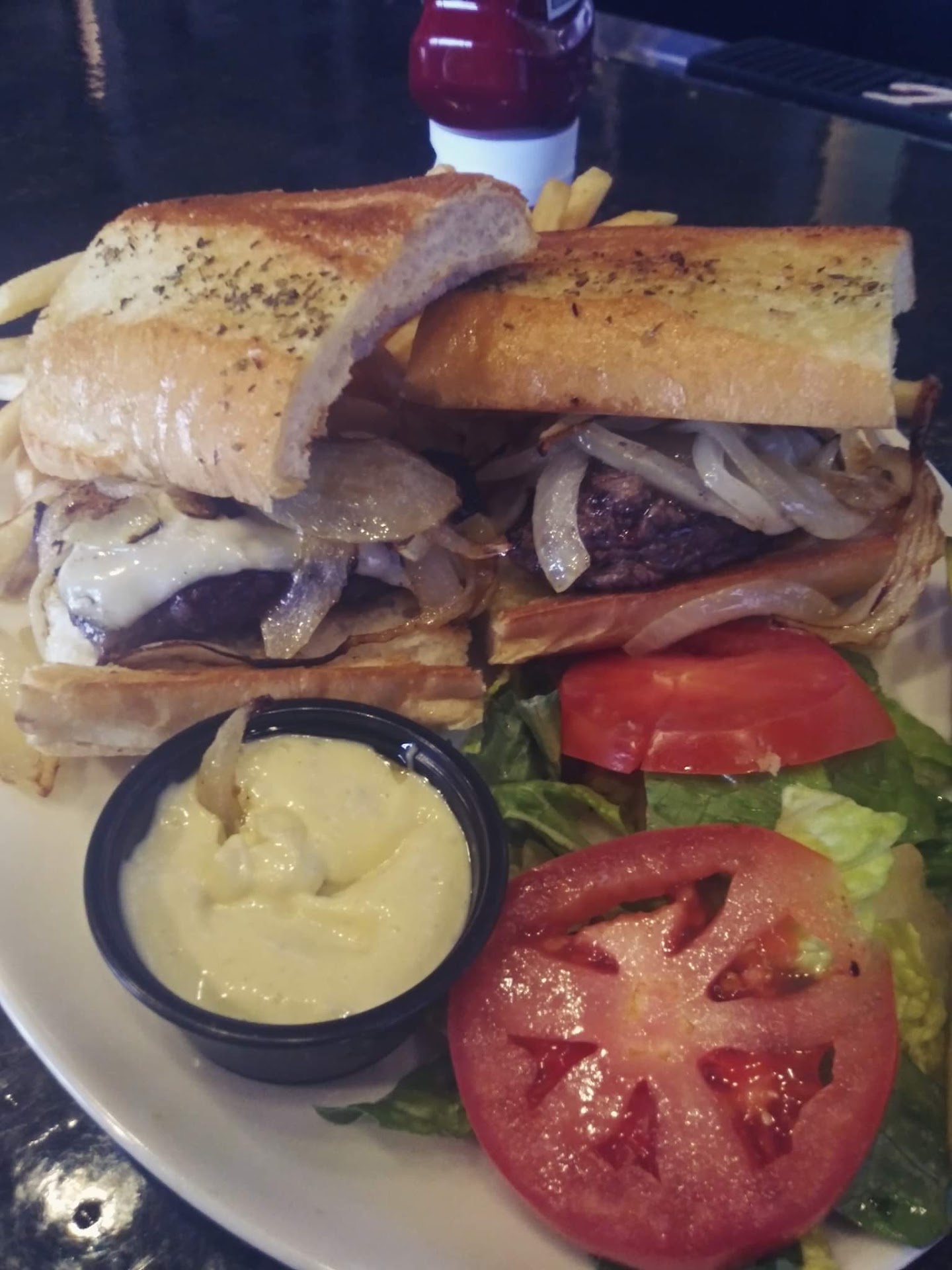 So it's been a while since I've ordered from here, but when I do order, I usually get the same thing, the steak sandwich. Now the food tastes good, and my boyfriend's meal was a decent portion, I'll give them that, but my sandwich on the other hand, was quite weak. First off, the price went up...ok, I get inflation, especially this day in age. The price went up $1 since 2019, not really that big of a deal, but it's not necessarily a cheap sandwich either. The price of just the sandwich, no sides included, is $15.95. The steak on the larger side of the sandwich(they cut it in half on a piece of French bread), was thinner than my finger so under 1/2 inch thick, 2.75 inches long, and 2 inches wide. It was near the same size as the cup of garlic aioli that came with it. The taste of the sandwich was good, but unless they change the size of the steak in this sandwich, it's definitely not worth it. I would not recommend this sandwich, and more than likely won't be heading back anytime soon as this is the main thing I would come here for. Picture of the same sandwich I ordered over 2 years ago also pictured. Steak in older picture was twice as thick in size, if not more. Absolutely not worth the price being charged for this sandwich, and it's double the price of any sandwich...