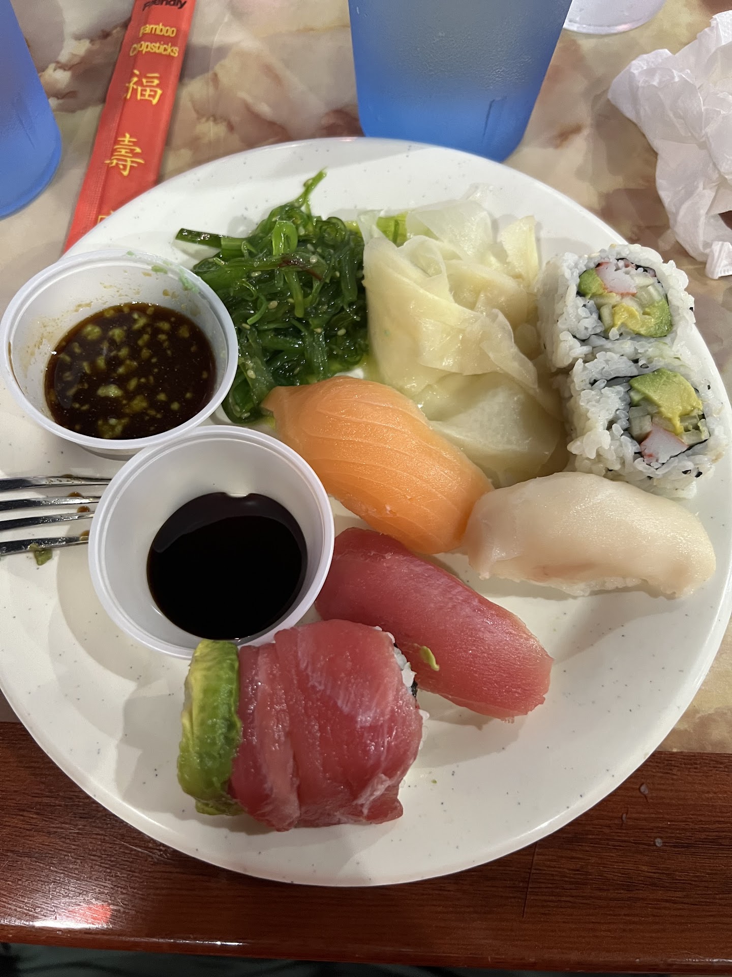 I saw a lot of red flags that shouldāve been my indicator to turn around and eat elsewhere: Sticky floors An empty koi pond with dirty water and tissues floating around water dripping from the ceiling and wet floor signs every 10 feet. Iām sure the money they spent on the signs couldāve been used to fix the leak strange soft spot in the floor entering the dining area that can easily cause you to trip 75% of the food there was stuff you buy in bulk at Costco and throw in the oven or fryer stale ice cream cones and watered down ice cream The real killer:seafood The seafood they offered here was either not properly prepared or not properly stored and served. This seafood is a great way to give your digestive system a reset.