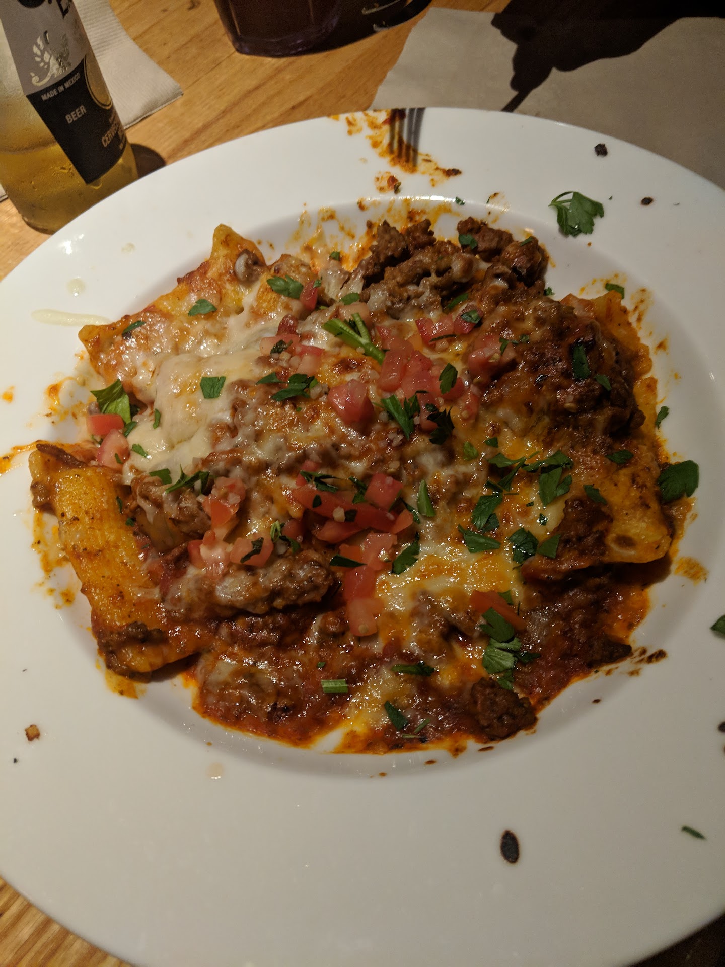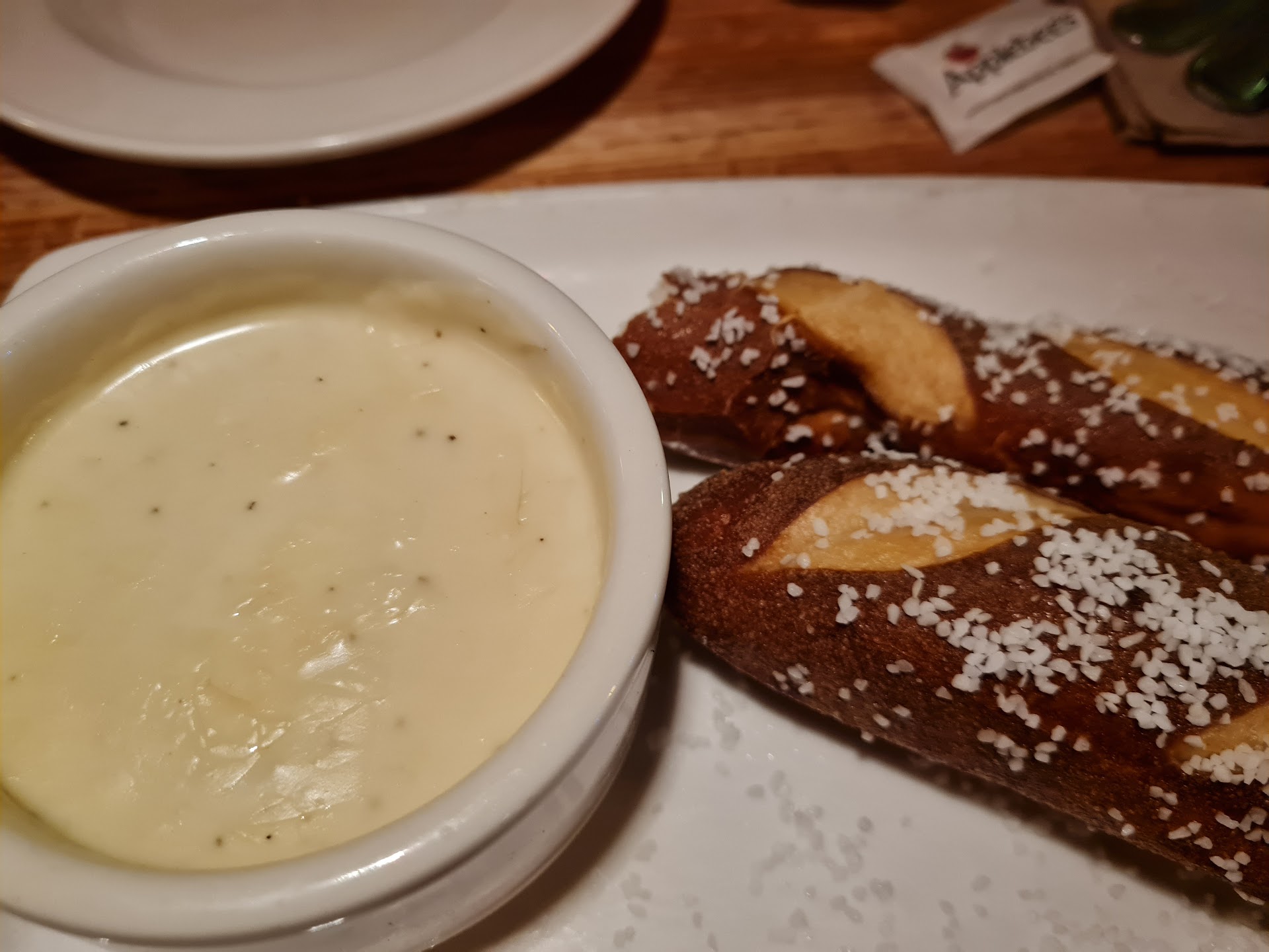 Read moreIt's an Applebee's so I don't expect a 5 star restaurant, that being said it was an all around good dinner, little to no wait time from being seated to our food coming out. We did visit on a Thursday evening around 9 pm but this let us catch hour hour. We ordered the endless wings, riblets and chicken strips and only made it through one order! Eyes larger than stomach obviously and portions are a fair size. I've eaten at this particular location over the years and they have always had someone working the bar (and servicing tables) who goes above and beyond to make you happy. You want double sauces..done. you want candy from another drink in your drink..done. you want to take home your plate from all you can eat...not allowed but you know what, here's a to go container anyway. Wink wink. Not to mention that I have never seen the night shift employees yawning or in a dull mood, they are literally amped and happy every time I have ever been. We sat at a hightop near the bar (because I'm not a fan of the booths personally- unless there's a day time rush) that's just my preference. You can see a TV from anywhere that you sit if you need a form of entertainment. This place isn't high on my resturant list just because there are so many other places I'd like to try all over the valley but if someone wants to go to Applebee's in general, this is the one I stear them to because I simply enjoy the warm personality working behind the bar. You will never have a bad experience at this location that they don't bend over backwards to rectify. Atmosphere is bland-on purpose to appeal to the majority. They still have red, blue and yellow crayons and a kids menu to color on...non-age descriminant. Clean bathrooms. This location in particular gets very busy during the day but starts to thinned out after typical dinner time...like 7 or 8pm. Happy hour specials were not super exciting but there was a handful of different drinks on there, a limited variety of sorts and...
