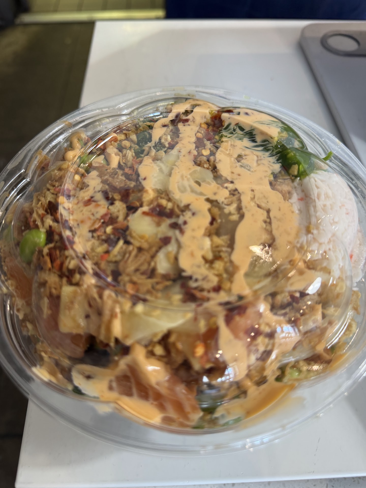 Read moreWhen they first opened they were a 4 or 4.5 star now when I go I feel like they skimp on ingredients and sometimes the fish isn't very fresh tasting. I usually get their greens and more often than not half is inedible. Today some of my lettuce was slimy and what wasn't slimy was yellow or very wilted with a few nice pieces mixed in. Very disappointed, and they are a little more pricey than other options in town that are better quality and more generous with toppings. Staff is hit or miss on friendliness. At times they don't listen and I get wrong stuff(today I asked for shrimp twice and she gave me salmon). I've also seen some poor food handling(I am food safety certified so I know what to look for). It's a very short walk from my house but I will be going elsewhere...