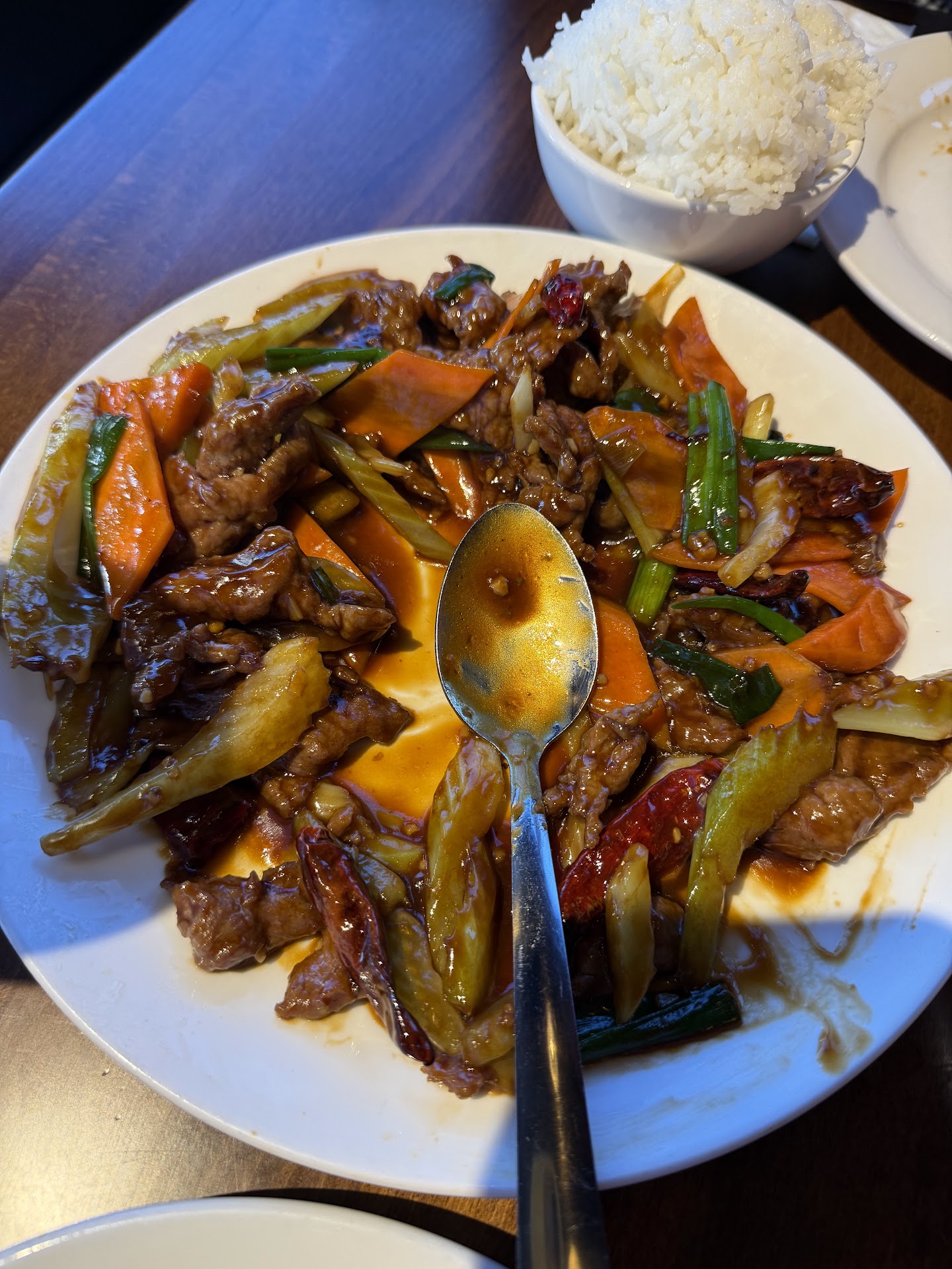 The food was prepared quickly and it came out fresh and hot. We ordered Mongolian beef, spicy eggplant, and fish filet with mixed vegetables from the lunch special section of the menu, which also comes with soup or salad and steamed white or brown rice. We got a good amount of food for a reasonable price. All of us had enough leftover for a second meal! đ