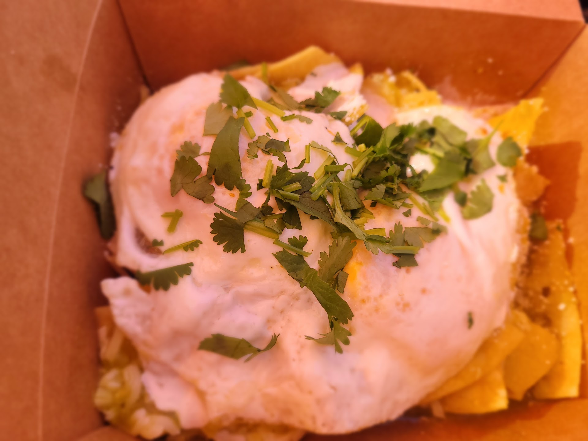 I tried this place today because Chilaquiles are one of my favorite foods. I was expecting to be disappointed because I like my chilaquiles crunchy with texture and not soggy like most restaurants have but I was very pleasantly surprised. These chilaquiles are crunchy, flavorful, and the portion is huge! I tried the divorciardos with carne asada and an egg and they were delicious. The owner let me try the chipotle salsa on the side and that will be my order next time. He was very informative about the food, made customers feel welcome and you can see the pride he has in his restaurant and cooking. He’s a very pleasant person. It makes me happy to see new people come up in their dreams of owning a restaurant. Word of caution, I’m mexican and the red salsa on the chilaquiles was very hot! So beware lol. But they were still amazing and the owner does...