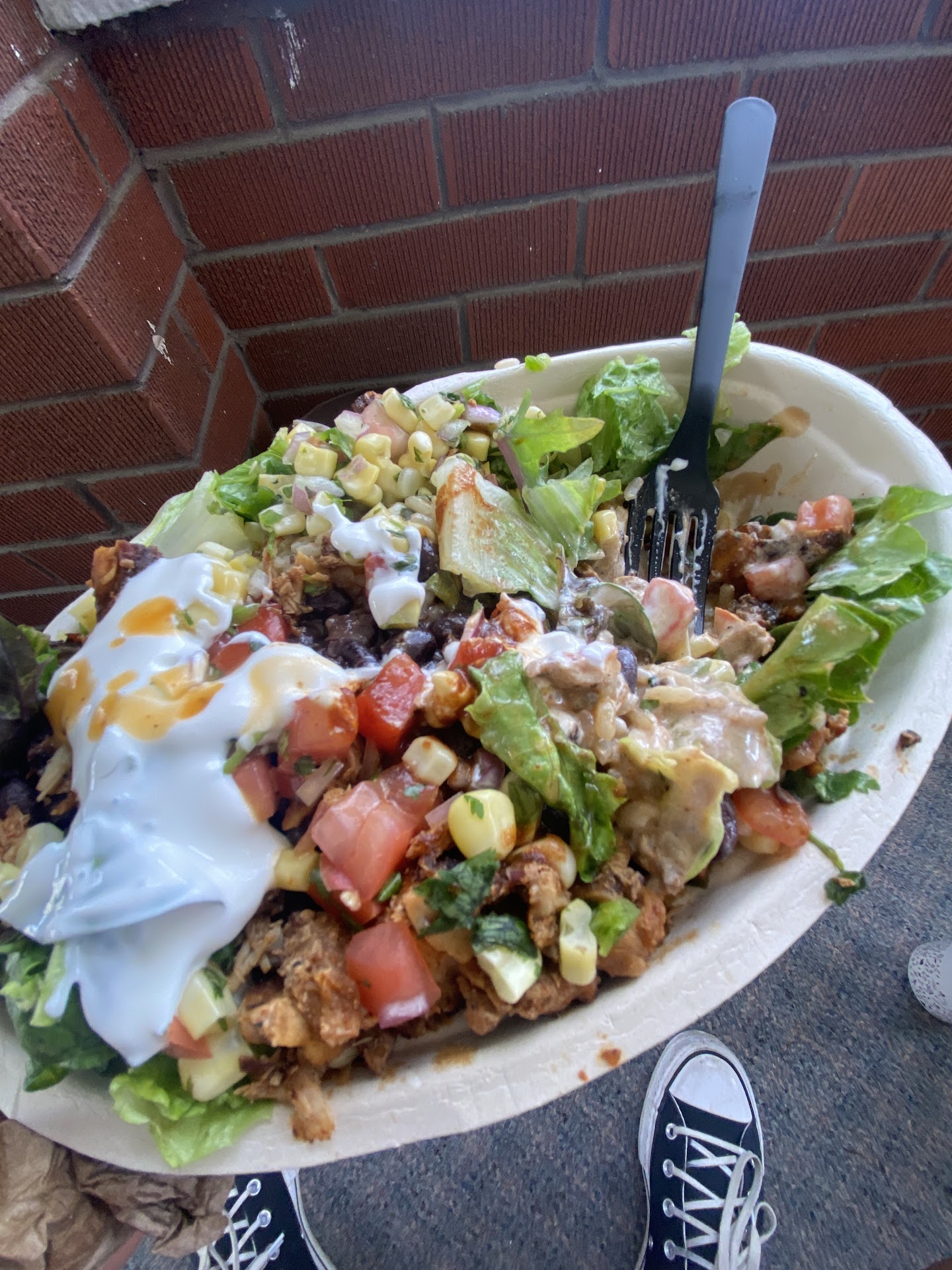 During a virtual lunch date with my daughter, we both were trying to enjoy the delicious chipotle chicken and rice bowls.