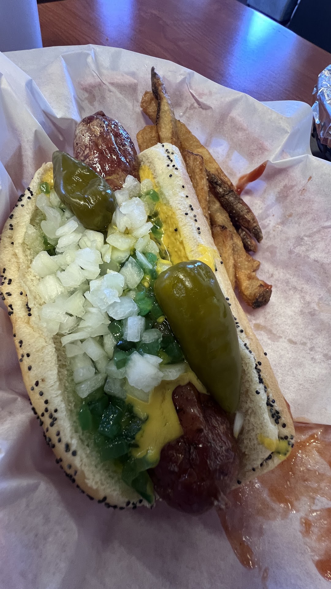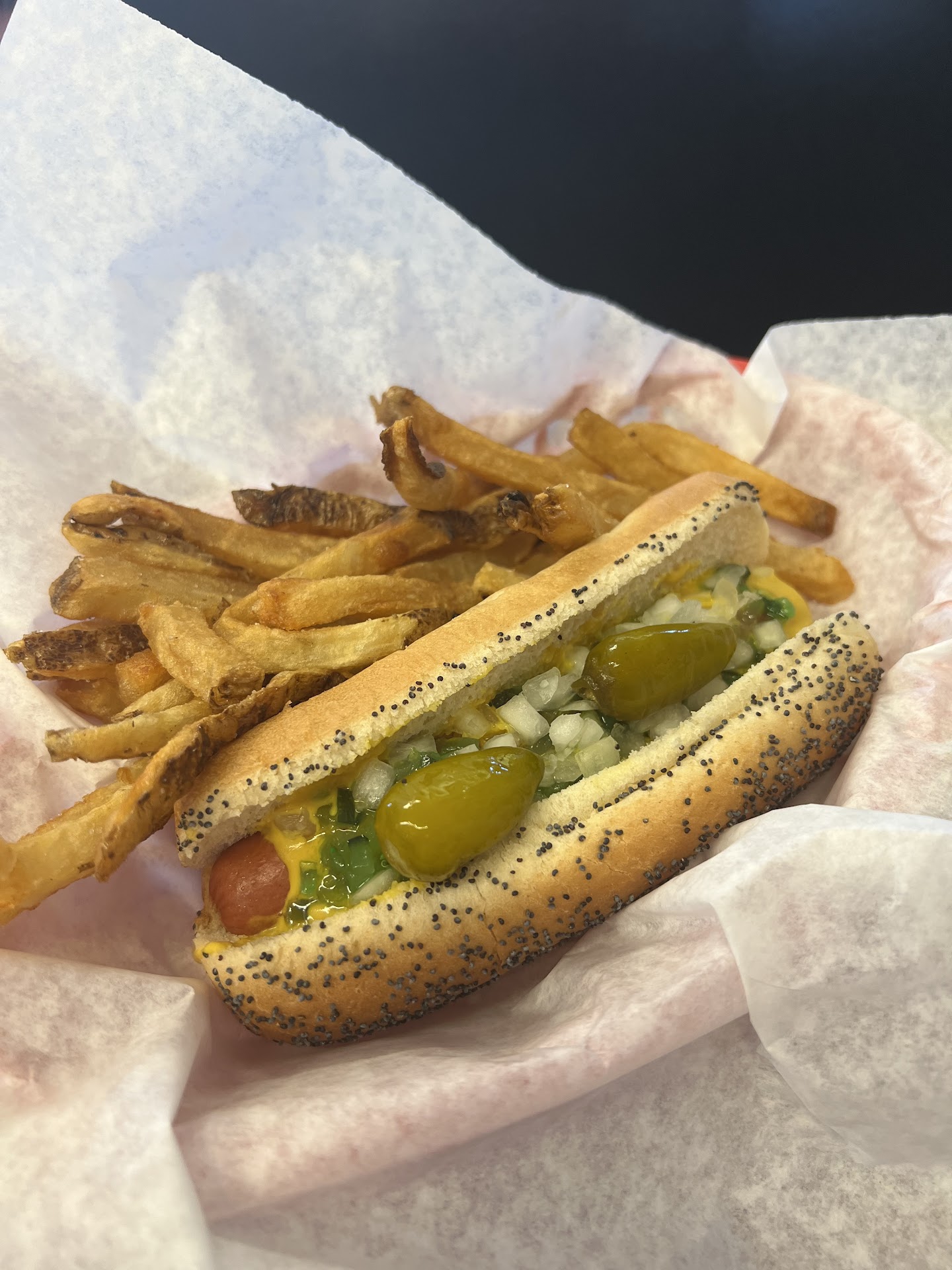 A friend recommended Dazzo’s to me, and today I made it a point to try them for lunch. They’re closed on Sundays and Mondays; so today was my first opportunity to come here. I was a bit enthusiastic 🤩 looking at the reviews. I made it in good time from Surprise. There’s adequate parking, and a drive thru. If you come to dine-in, be aware there are no bathrooms. I checked out the menu asking a few questions. They don’t serve a true Chicago style hot dog 🌭. What they dress on their Vienna beef franks is onions, relish, mustard, and hot peppers on a poppyseed bun. Fries are included with each hot dog. It’s like Gene & Jude’s back in Chicago; only no pickle. It’s a cool place; with a lot of history. The owner was there to show me a few photos. He has an uncle who was a professional prize fighter… bantam middleweight (?). I’ll have to Google 🔍 more, and return to try their Italian beef. The food is pretty good for the price. The only thing that disappoints me is no bathroom. The distance is not too bad, and coming around 3:00 helped to avoid traffic. Total after tax my bill came to $16.85. An overcharge that they rectified the following Thursday. Nice to know they show integrity in doing the right thing. Give them a try if you’re in the area.