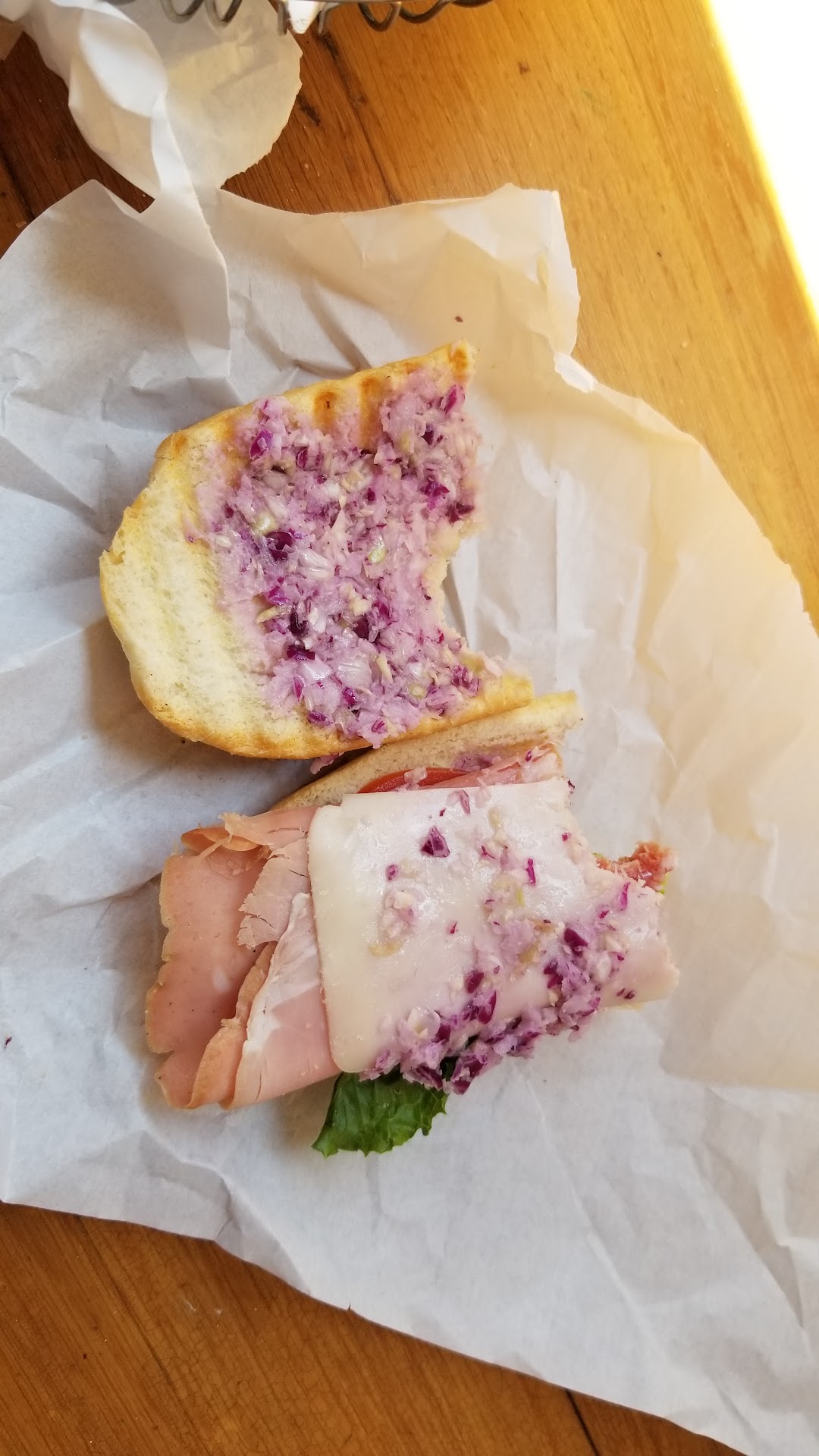 Read moreReally?!!! This was a serious surprise. I get skeptical getting "fancy" sandwiches that are not going to satisfy me. But this place? The price is decent especially where it is located. But the taste and quality are stunning. Each part of of our Figs and Pigs sandwich and Panino al Pollo tasted and FELT like someone thought out each layer. Those names sound fru fru (spelling?) But the meats on each were plenty and cooked the right way. I thought fig butter might be weird. NOPE! it was phenomenal with the pork. Just the right amount of gentle sweetness. I like ciabatta bread but usually avoid it because it sits so heavy. Not here! The entire bun is evenly medium weight and easy to bite through without feeling like a fluffy cheap bread. Places that look like this usually charge a bit more but ALSO deliver less happiness. Pleasant accident coming here. And the shift leader Kayla was very nice, polite and walked us right into a...