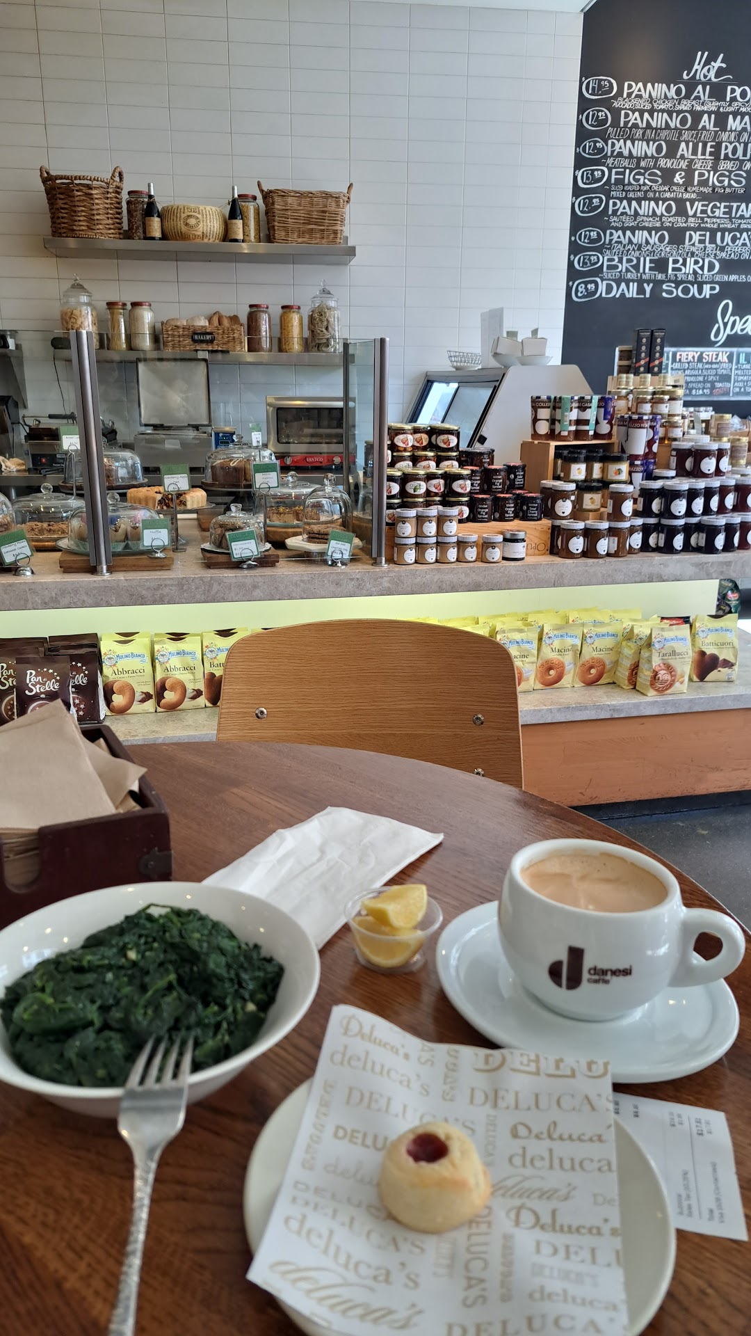 The food overall is fantastic, with sandwiches and that feel both comforting and gourmet. But what really sets De Luca’s apart is the incredible selection of Italian goods inside. They have a wide variety of imported prosciutto, cheeses, and other specialty products that are hard to find elsewhere. It's like stepping into a boutique Italian market.