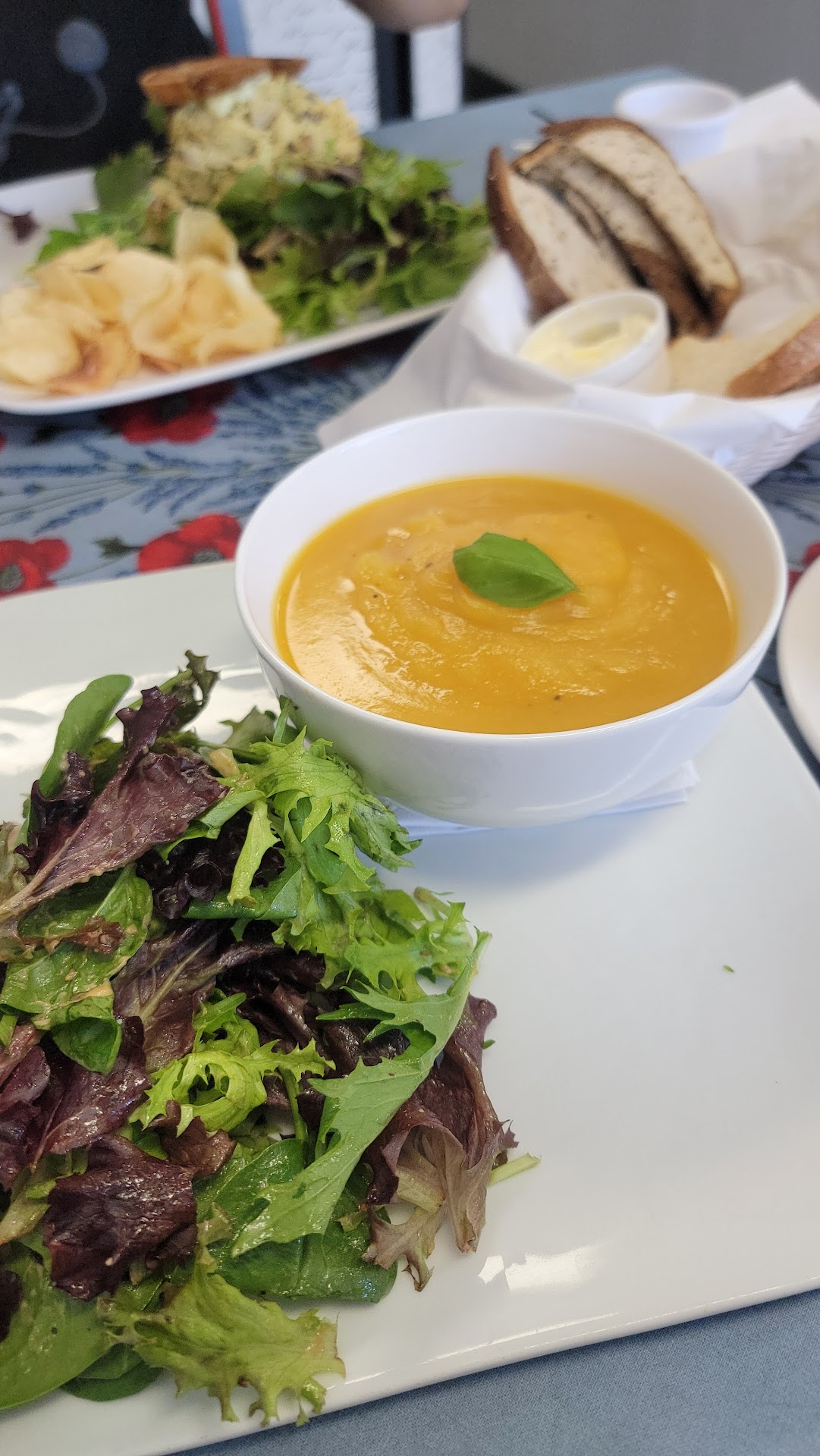 My friend and I found this place on a whim, while searching for something that had vegan options for me and non-vegan options for her. We had never heard of this place before, and it's tucked away, so it could easily be missed while driving by, but it's the best hidden gem I've come across in awhile. I've craved it a few times since I last had it hehe. The butternut squash soup was SO GOOD. And they had delicious bread and vegan butter... the butter was way too good and I asked for 2nds of the bread and butter haha. When I saw my soup come out with a salad, I was a bit bummed, ( first world problem I know), because I usually never like the salads at restaurants, and had i known, i wouldve told them not to waste it by adding it to my order. I didnt want to waste it, so i gave it a nibble. And i was surpised ...the salad was freaking delicious! I gobbled it down and haha.. i never do that with salad! Idk what dressing they tossed it in, but it was vegan friendly and amazing! I also ordered a vanilla latte, and it was not only one of the better lattes I've had, but it was also a lower price than most coffee shops that taste half as good. I also have a strong affinity for France, and i miss it every day. This place made me feel like I was immediately transported back there. Even the owner was speaking French ( i believe she said she was from Montreal), and everyone that worked there was SO NICE and so accommodating. It wasn't a cliché, trying to be Parisian spot - it was legitimately like a cafe would be on a beautiful corner on a busy street in Paris, with the loveliest little French goodies. I was filled with nostalgia by being there. I only wish they had vegan croissants, because OMG did their croissants smell insanely good, and i so badly wish i couldve had one. I was so in love with this spot, and my friend and I stayed way too long... a few minutes past closing time, but they were so sweet about it and let us finish our conversation, instead of kicking us out. My friend and i can't wait to go back, and said we should make this a regular brunch routine for us. But next time we promise not to stay past closing time ;) . I can't recommend this place enough! -...