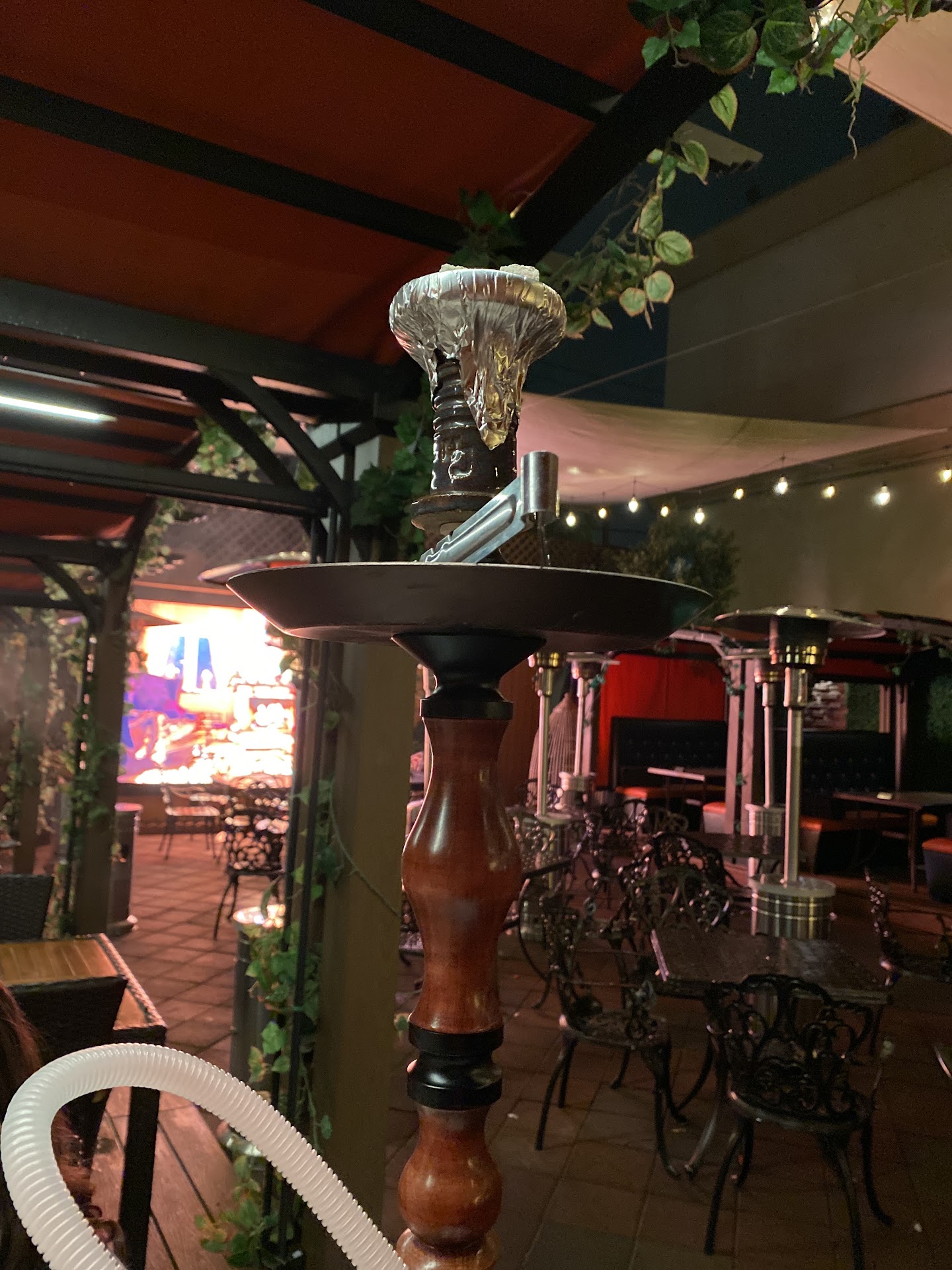 Read moreI like the atmosphere at this place, it is outdoor seating with very youngish vibe. Went few times so far the weekdays are less crowded than weekends, I do recommend reservation on a weekend especially if you are going after 7 pm cause otherwise you will have to wait, if you go there walk in at 6 you will be fine with no wait. They offer big range of hookah options, also many cocktail options, but food is limited for maybe 4 type of entrees and sandwiches, I like their appetizers. For your appitizer I would recommend the buffalo bites, brussel sprouts and Calamari. I love the way the serve the tea there so I usually do tea and hookah. Park outside and walk of you do not want to get vallet. Service is not the best, seats are dirty but place and food and everything...