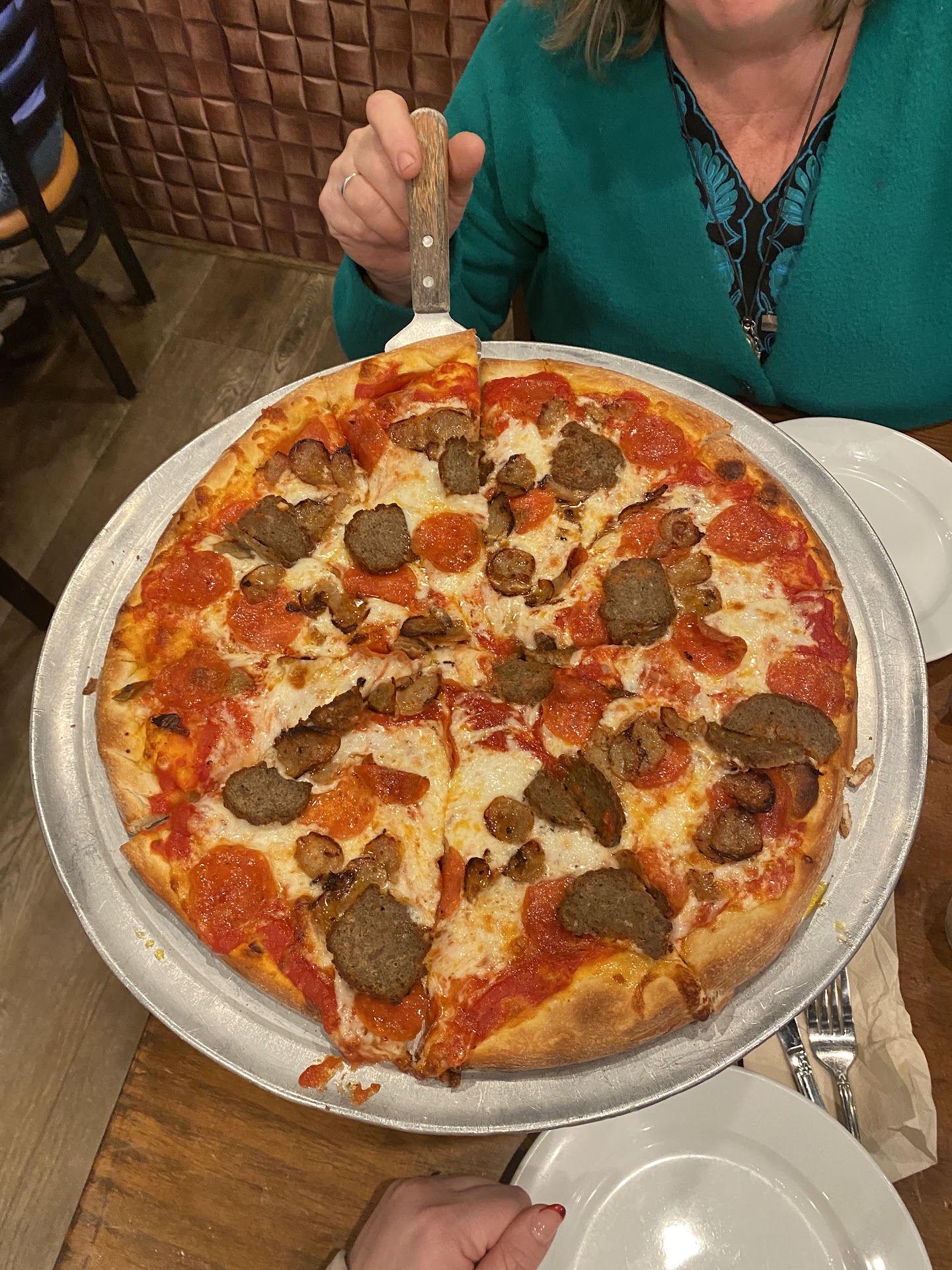 Read moreWe ordered a pizza with pineapple, mushrooms, tomatoes, chicken and canadian bacon. Ordered for pickup and immediately when we got in the car we smelled the pizza and it smelled a little off, but we thought it must be the mix of ingredients creating the strange aroma. Once we got home and were about to eat it, the smell was more easily identified. It turns out that the ham had turned and was bad which gave it a very fishy scent. When meat goes bad, even fish which generally has no real smell when fresh, it creates a fishy smell due to the bacterial growth. I called to inform them of the situation and was told that the woman who answered the phone went into the back and tried some of the ham and it was ok. I said that we weren't going to eat the pizza for fear of food poisoning. We were not offered any sort of refund, only that we could drive back and they would make us a new pizza. I will not be eating at this place again, nor will I recommend...