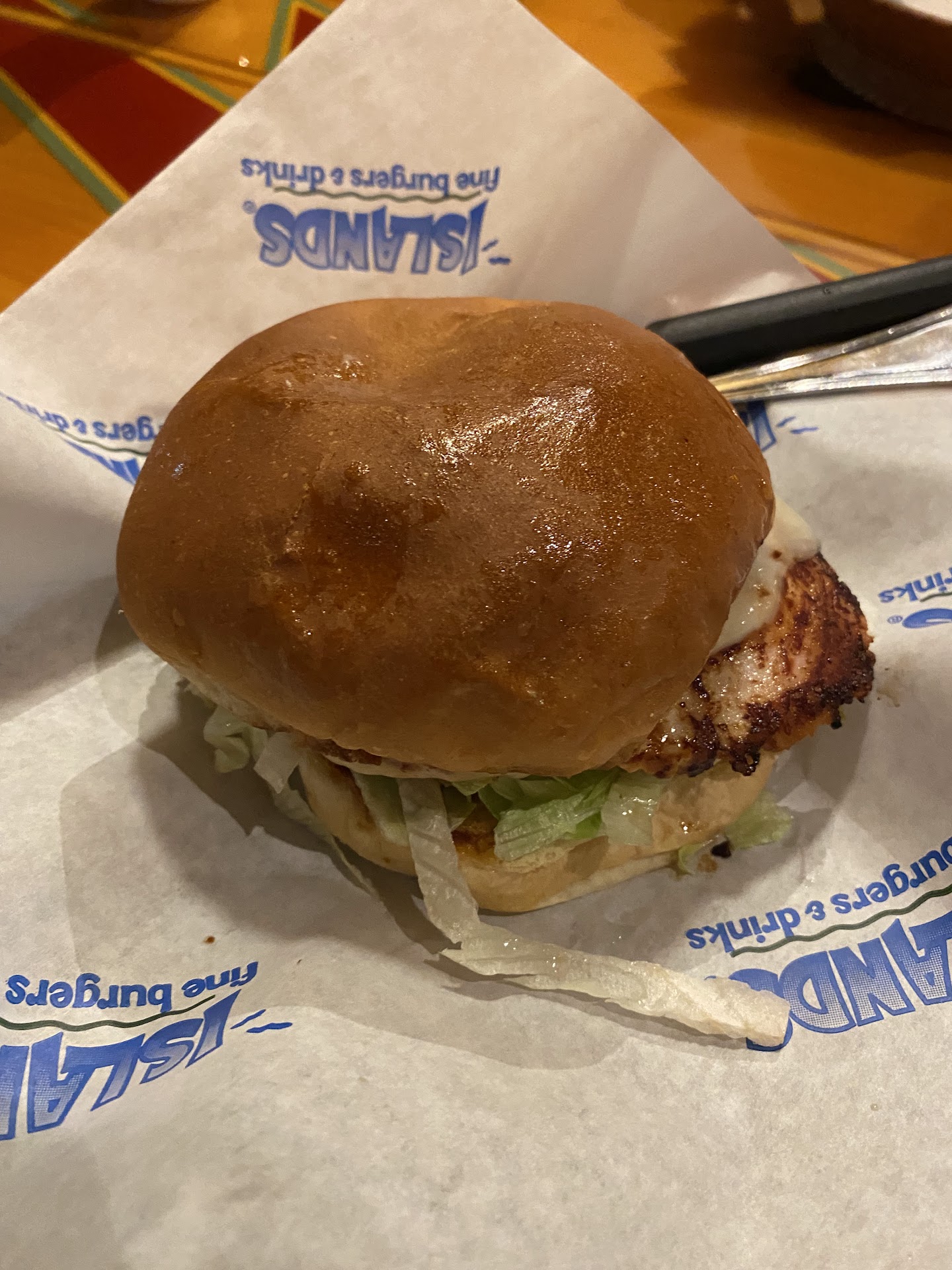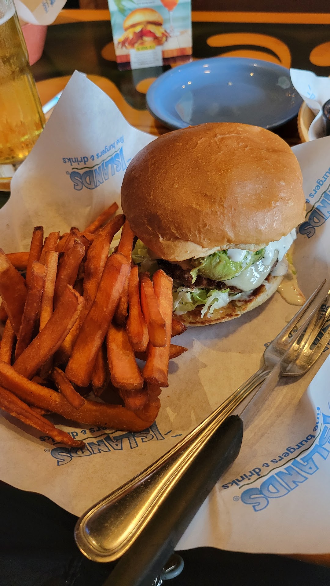 Read moreOrdered "The Big Wave" burger, and that was disappointing. Where"s the beef? The patty was thinner than my fingernail! A Jumbo Jack is much thicker. It was a lettuce, onion, and tomato burger with a hint of beef. On the plus side, my wife is disabled and we asked if "happy hour" was still on. 'Yes, but only in the bar area, which requires a lift. Also, once "up" it's just tall tables. Very uncomfortable. The manager came by our booth and said:"No worries." We were allowed to enjoy happy hour in a comfortable booth. Thank you for that. The drinks were adaquate, but a little stingy on the alcohol. But in Islands defense, the "Big Wave burger was on special for ten dollars, includes fries. At that price it was worth it. Anymore than 10 bucks I would feel ripprd off. The Fried Chicken sandwich was very good. The burgers shiould resemble that. Also, the screens in the dining were playing football as was the bar. Keep it tp the bar! If you must have sceens play nice images of beaches, and waves. Pretty stuff. Play nice music. Sports should only be in the bar. The staff was terrific, and we will return for happy hour, but the burgers...